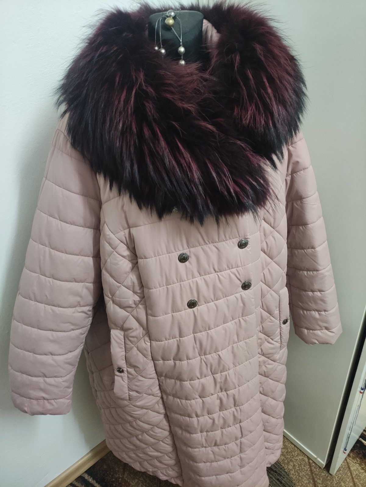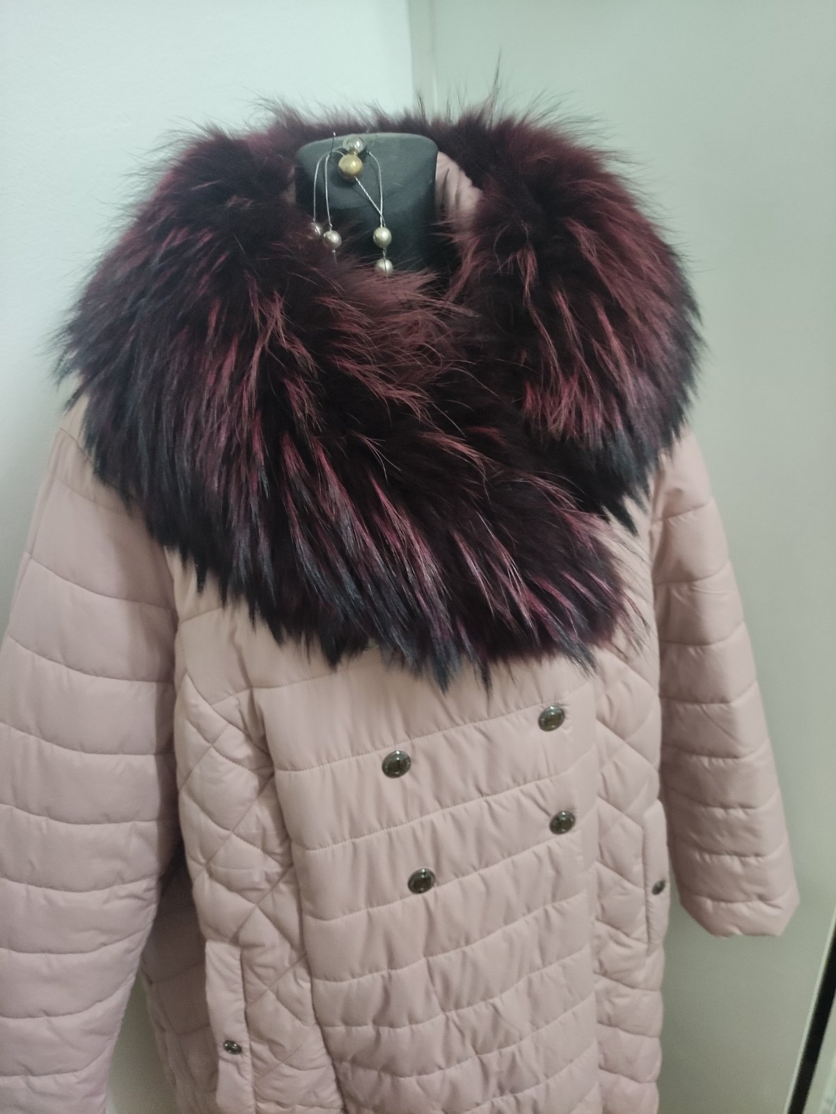Nádherna,bunda, nádherný golier pravá kozusina myval, veľkosť 54,šírka v prsiach 75, dĺžka 111cm.. odporúčam