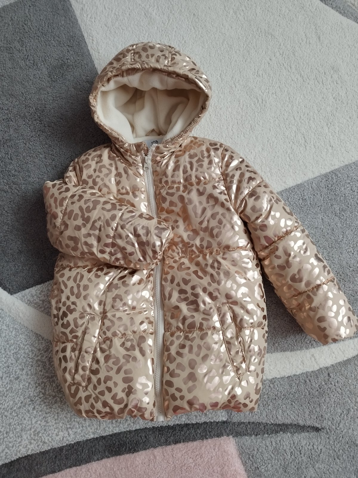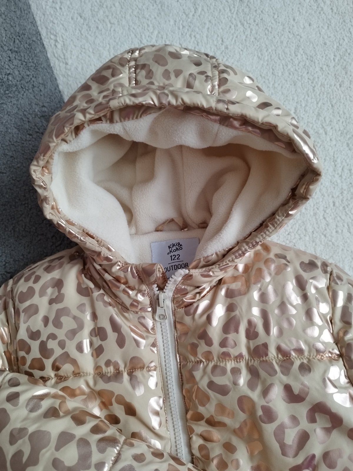 Zimná bunda s kapucňou a rukavičkami, veľkosť 122, bez poškodení.
