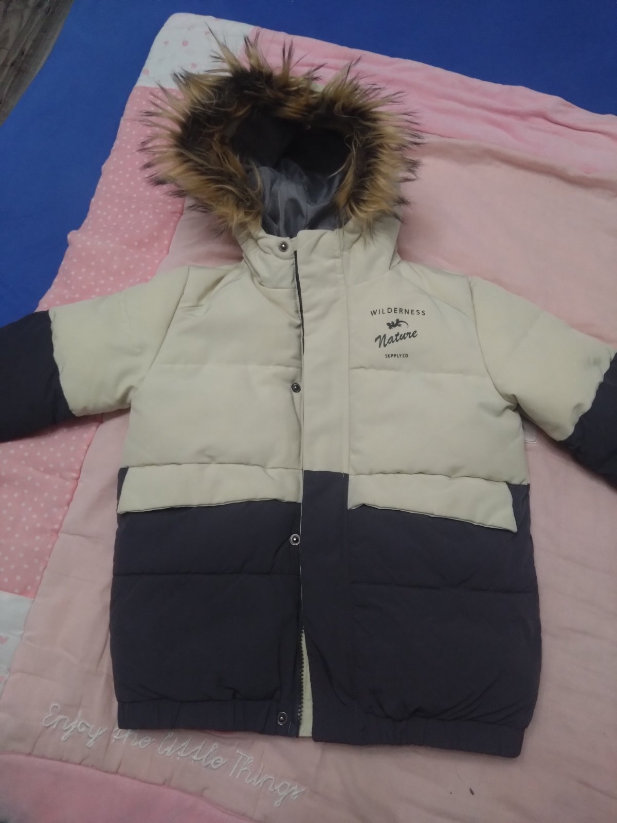Pekná, teplá bunda, kožušinka na kapucni je odnímateľná, bez poškodení