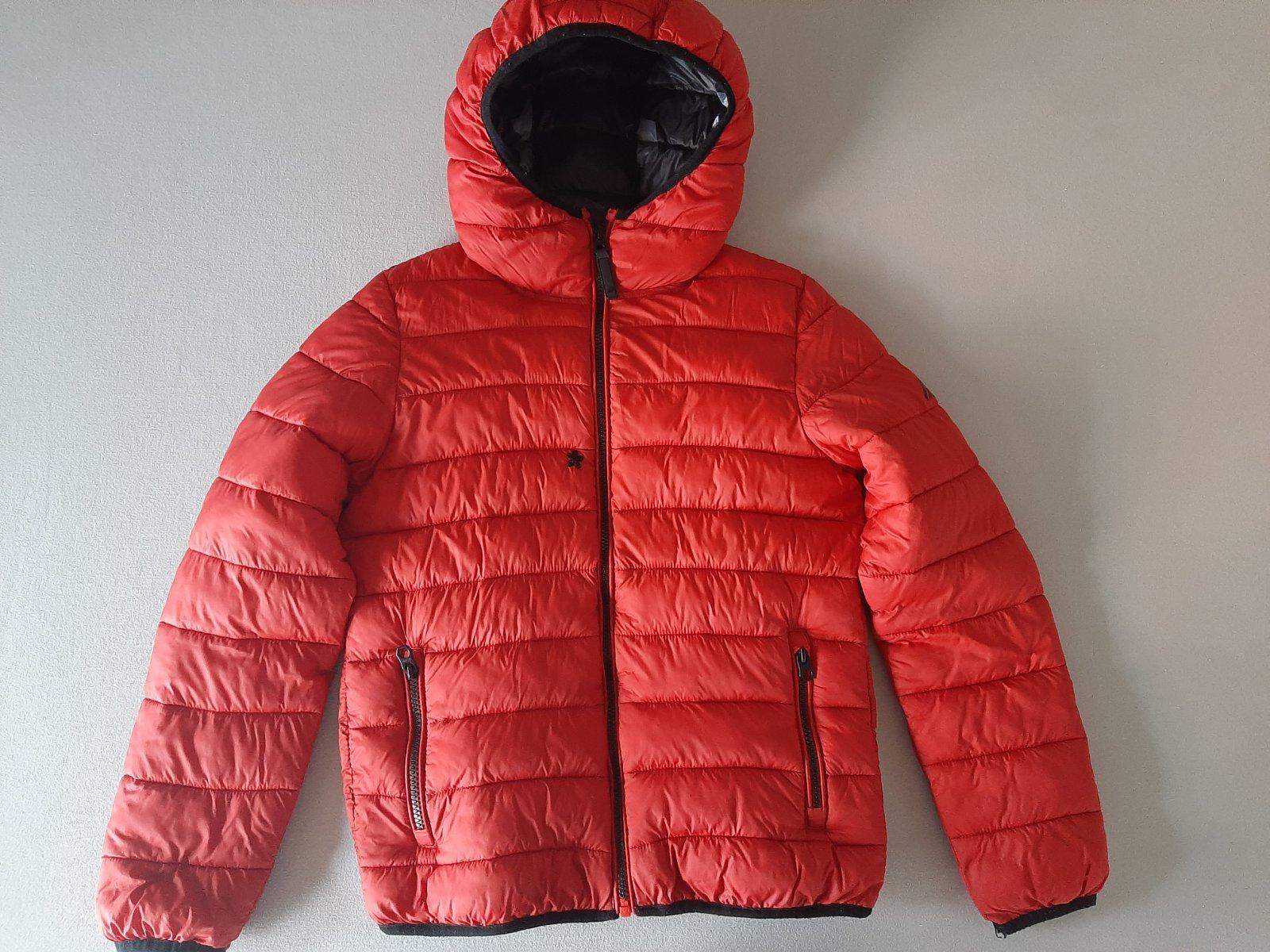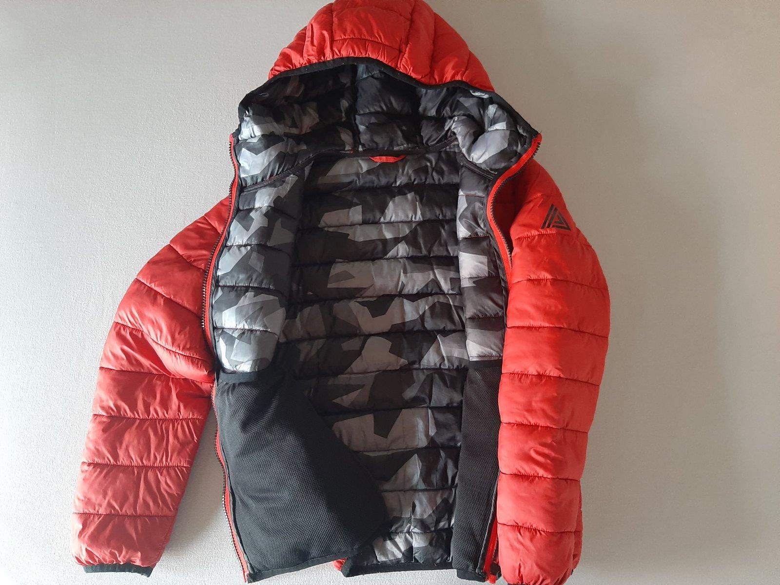 Moderná zimná bunda červenej farby v kombinácii kontrastnej sivej maskáčovej podšívky značky Next veľkosti 134/140. Bunda sa zapína na zips a vpredu má vrecká. Kapucňa nie je odnímateľná. Má teplé vatovanie, ktoré je odľahčené, aby nebola ťažká. V super stave.