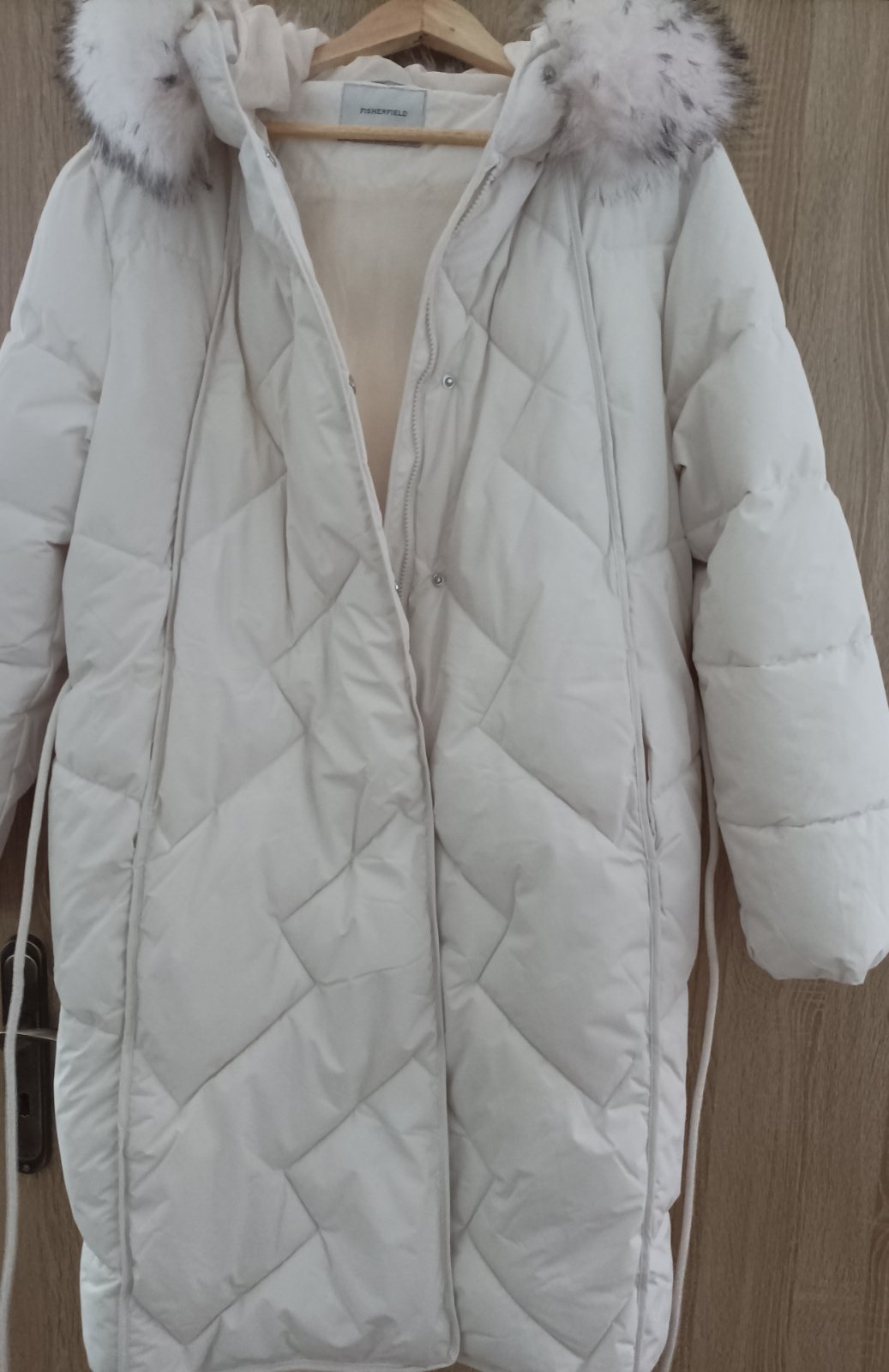 -krásna značková mäkka teplá ľahká jemná bunda snehová biela s odnímateľnou kapucňou aj odnímateľnou kožušinkou, pár krát oblečené vo výbornom, celková dĺžka 68, prsia 58, spodný obvod zakončený p...
