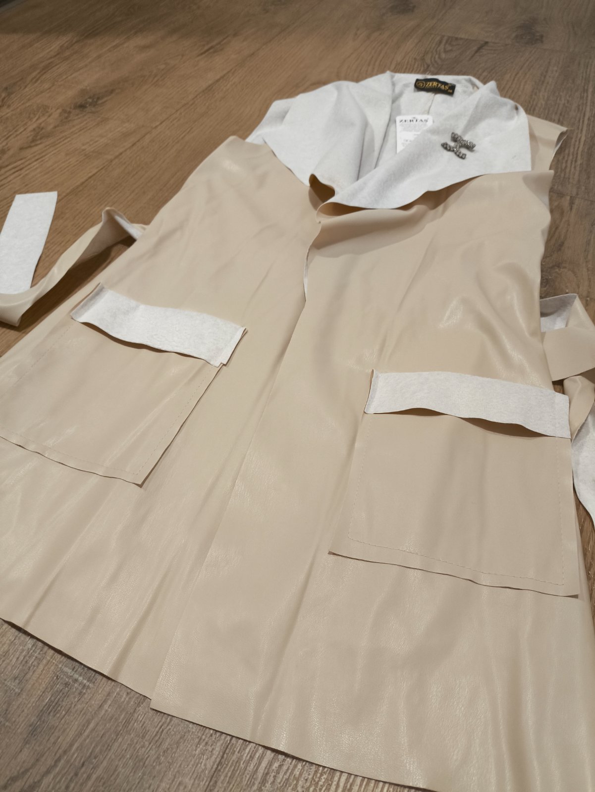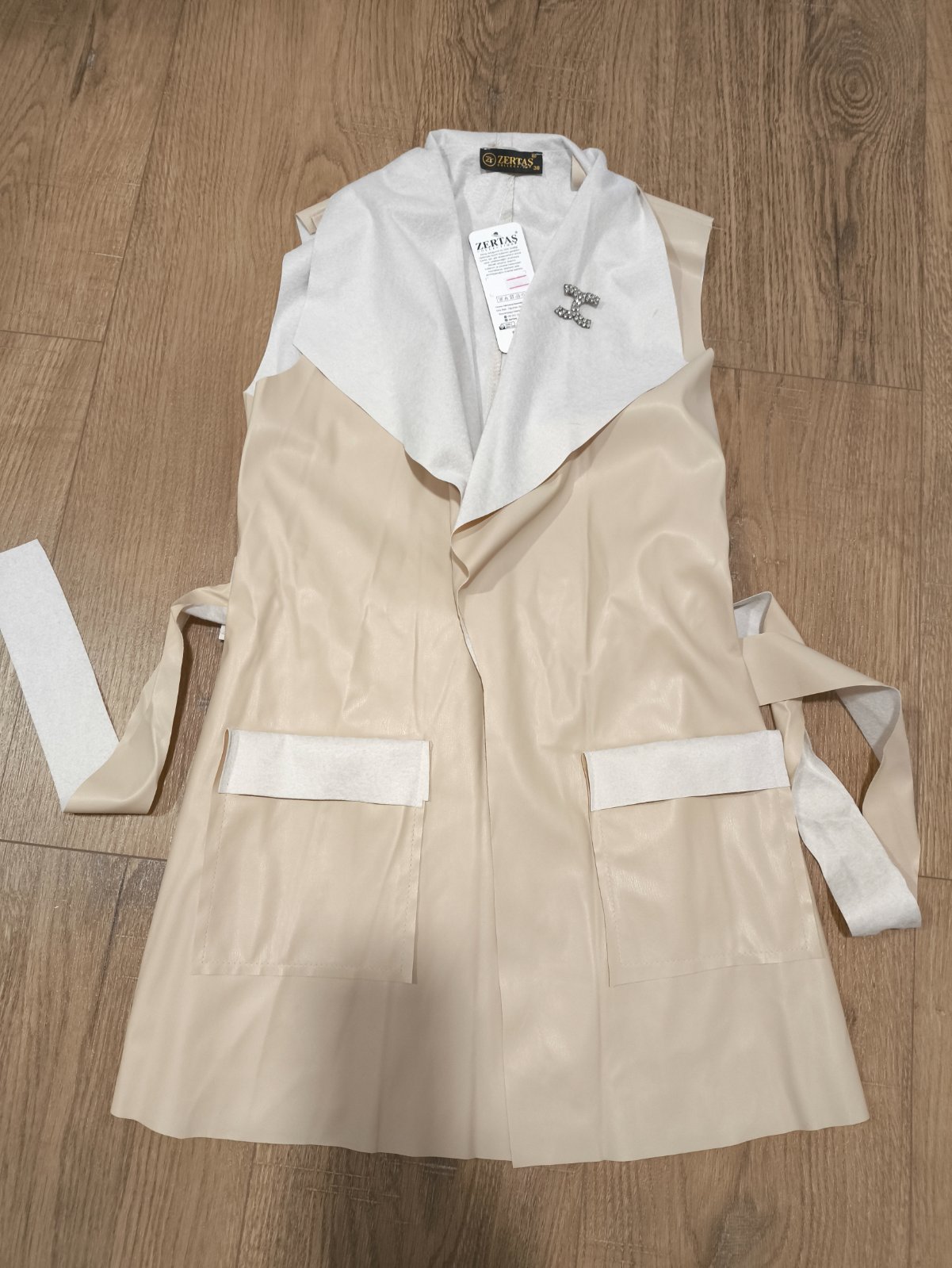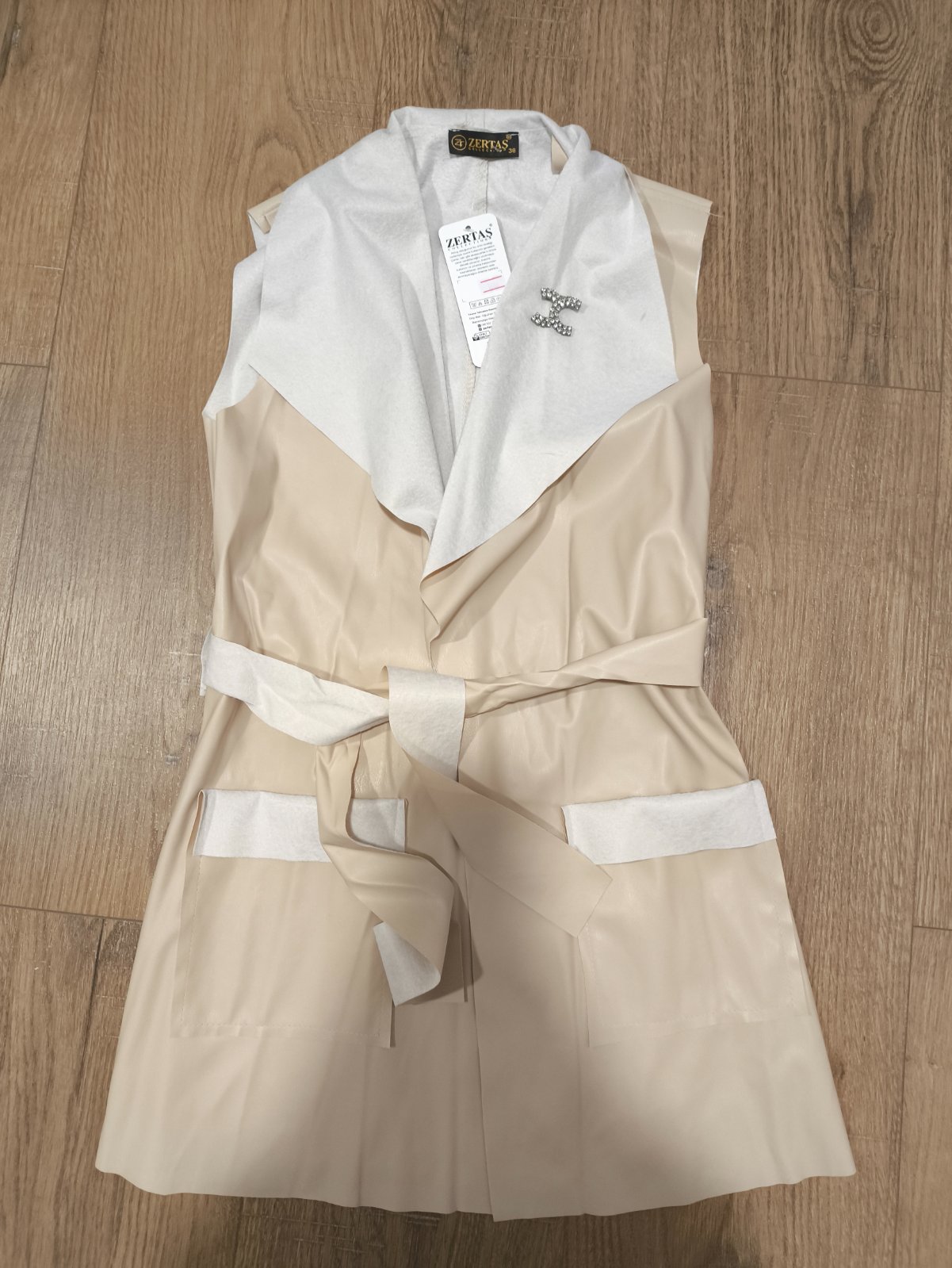 Nová s visačkou, písaná veľkosť 38, ale v pohode sadne od XS po M, možno aj L, keďže nemá zips ani gombíky, iba opasok. Tenká, príjemný materiál, krásna béžová farba.