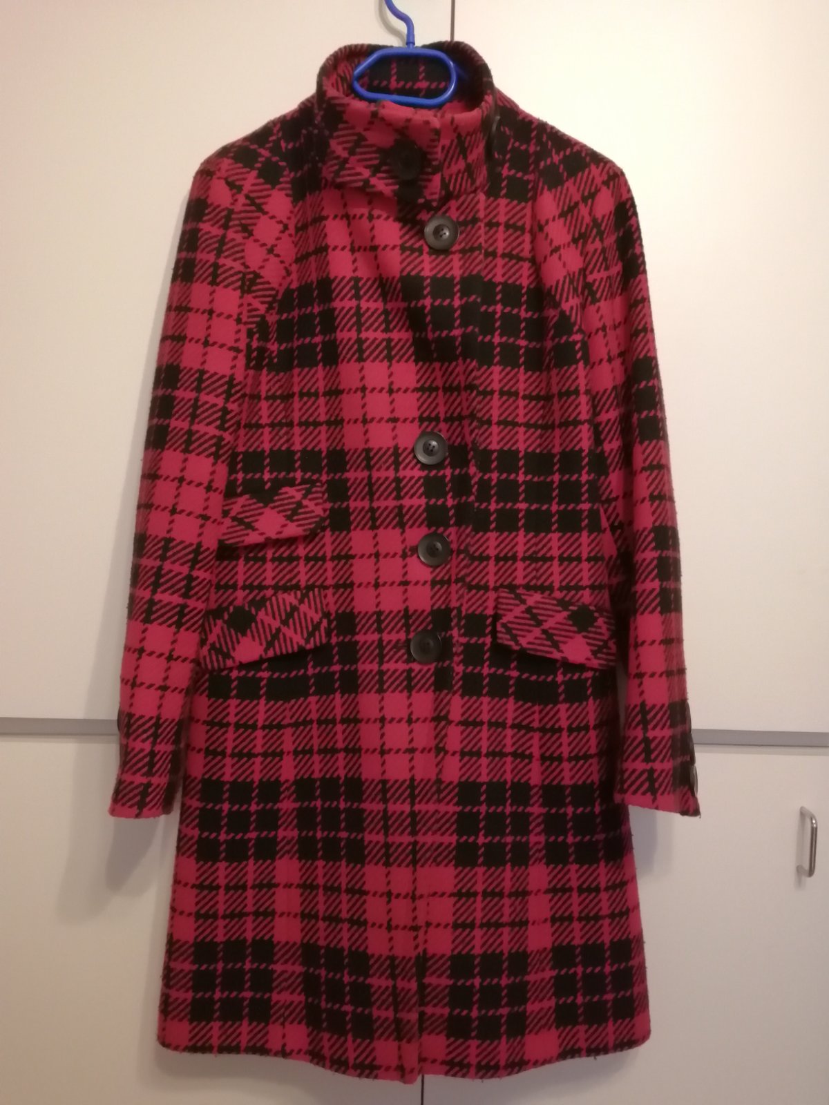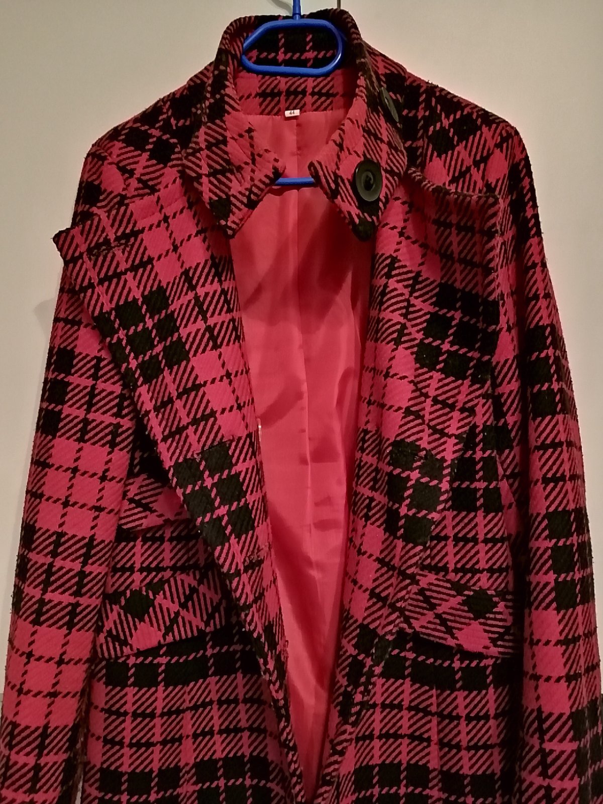 Pekný teply kabat, mäkký, príjemný, krátko noseny, nepoškodený, nemá kapucňu, kúpený nový. Celková dĺžka 95cm. Je červeno čierny. Pribrala som, uz ho nezapnem. Cena plus pošta.