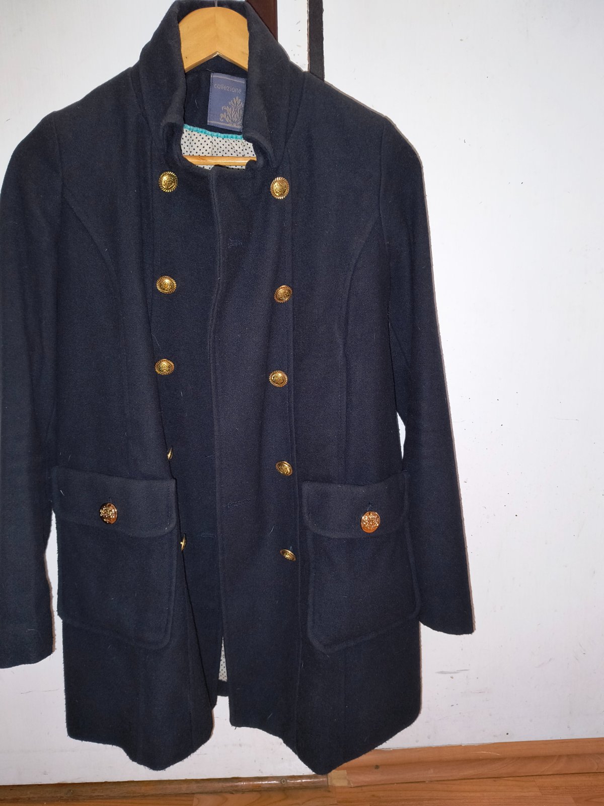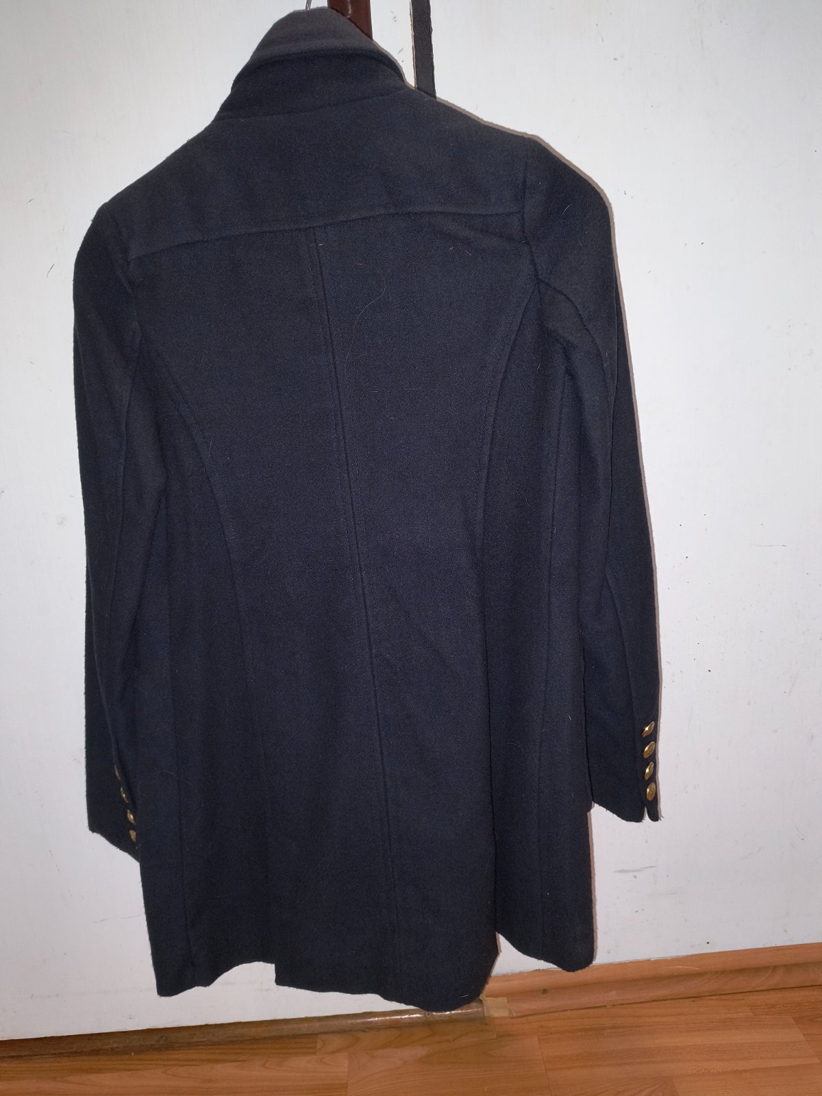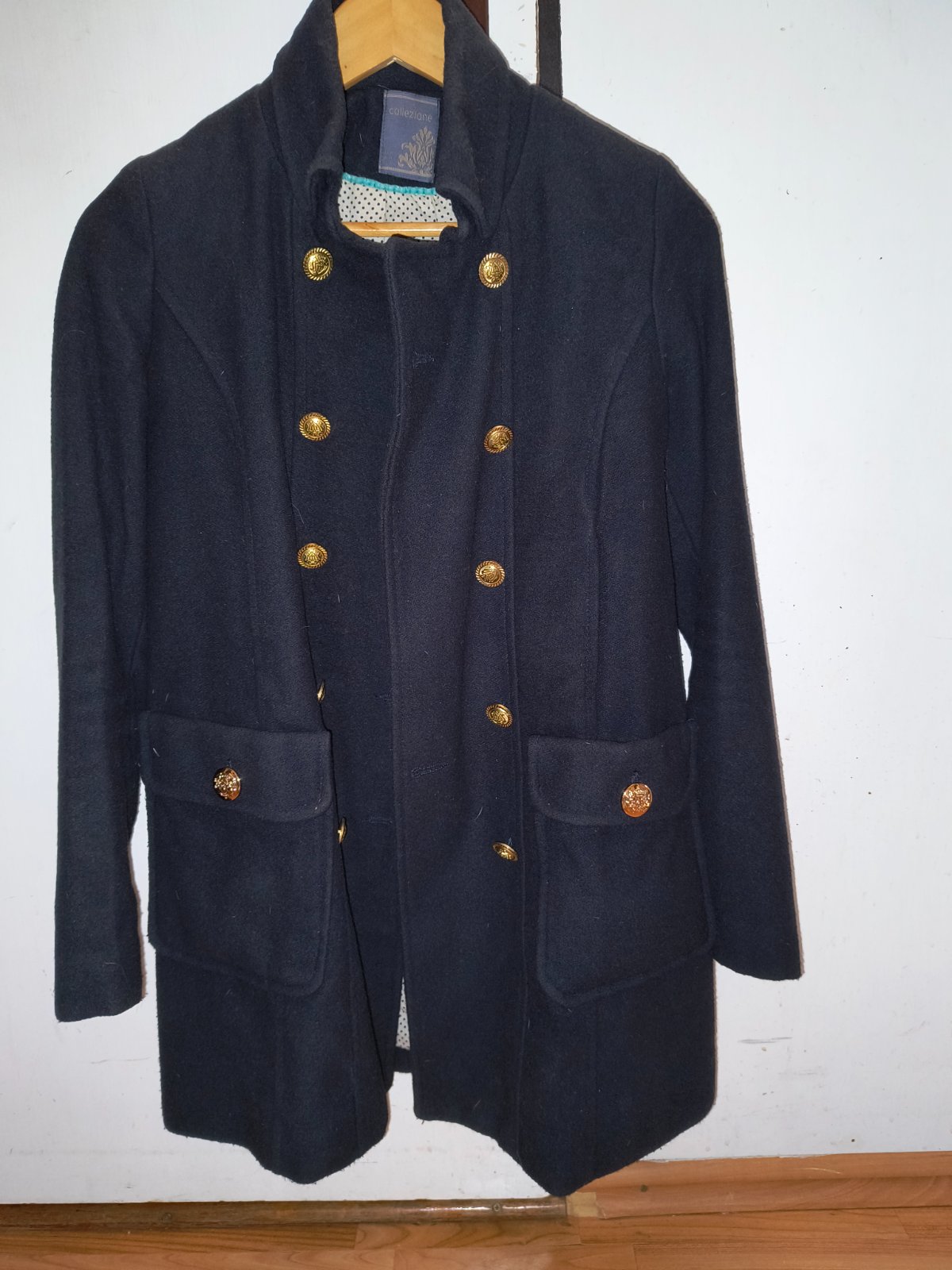 Taliansky prechodný kabát s vlnou. Je nadherny. Veľmi dobrý noseny stav, bez poškodení. Mala som ho maximalne 10x. Sem tam mini zmolky, ale sotva viditeľné. Krásne gombíky zlatej farby. Bavlnená podšívka. Rozmery nafotené. Rukávy sú úzke. Pozrite si rozmery.