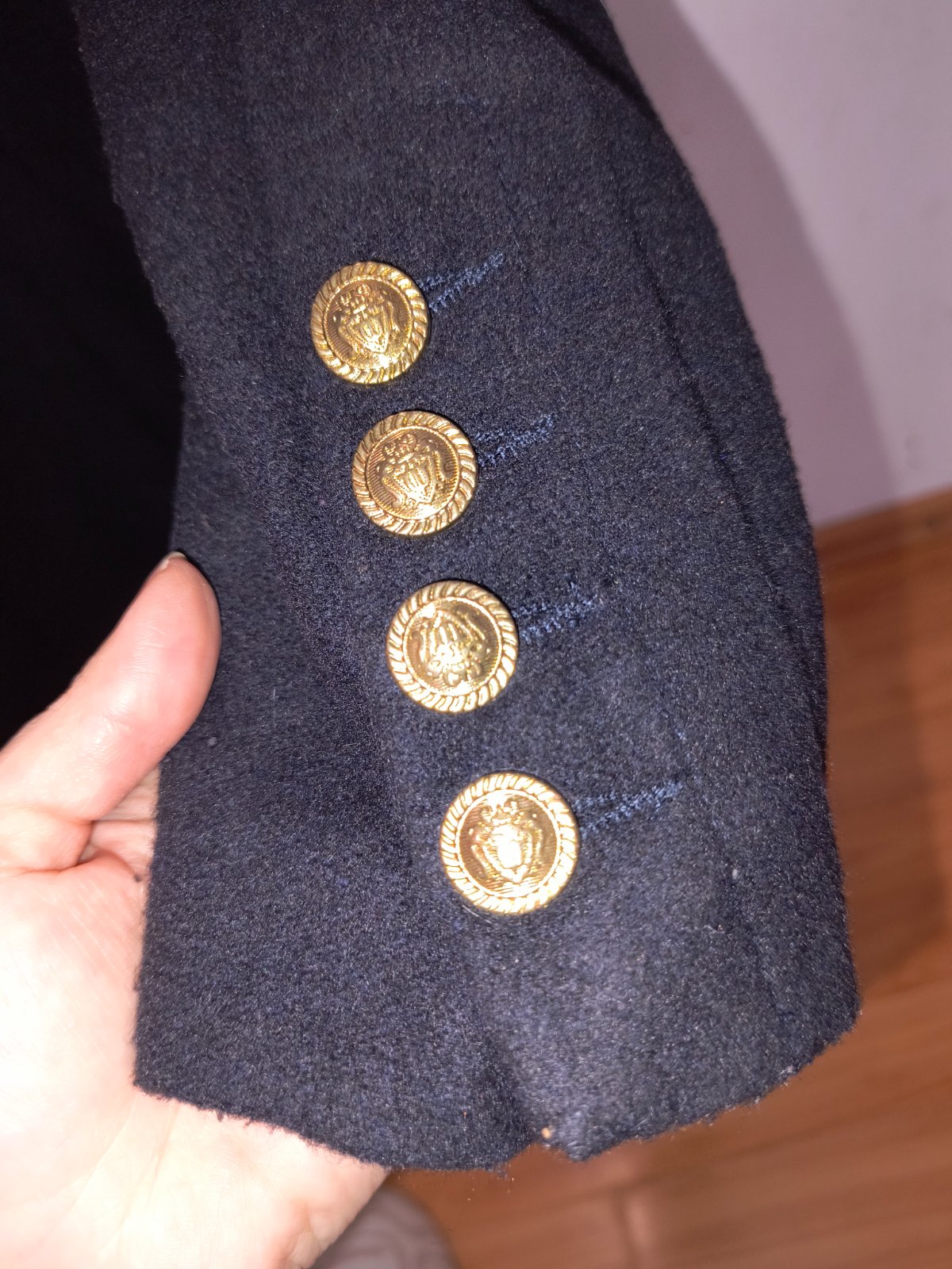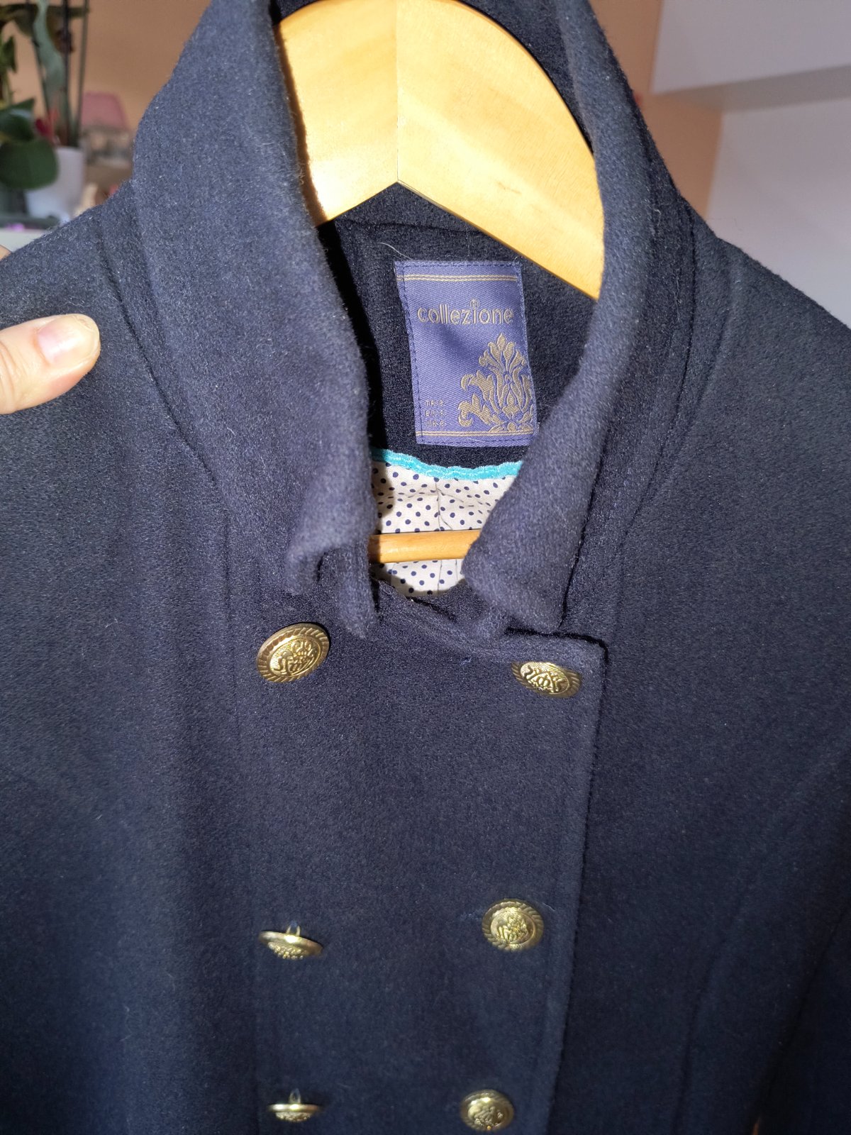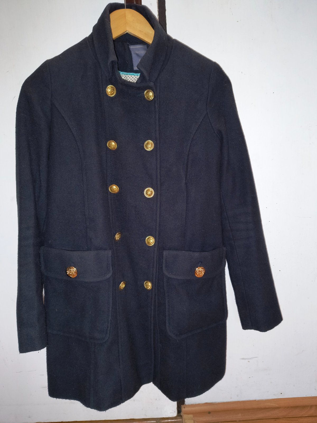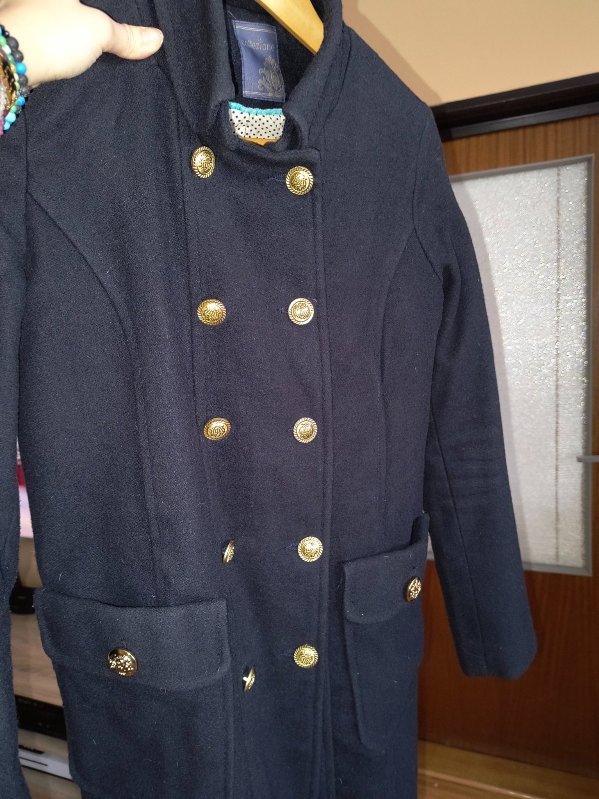 Taliansky prechodný kabát s vlnou. Je nadherny. Veľmi dobrý noseny stav, bez poškodení. Mala som ho maximalne 10x. Sem tam mini zmolky, ale sotva viditeľné. Krásne gombíky zlatej farby. Bavlnená podšívka. Rozmery nafotené. Rukávy sú úzke. Pozrite si rozmery.