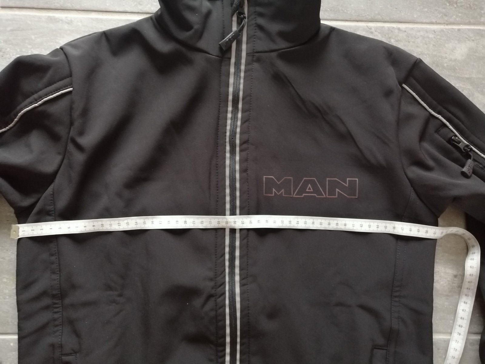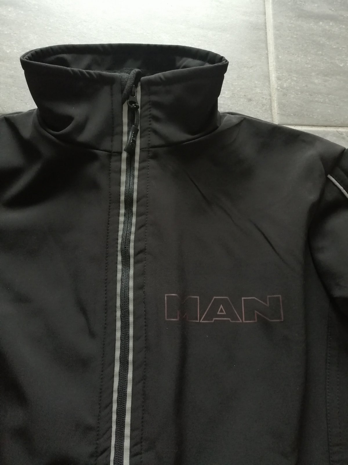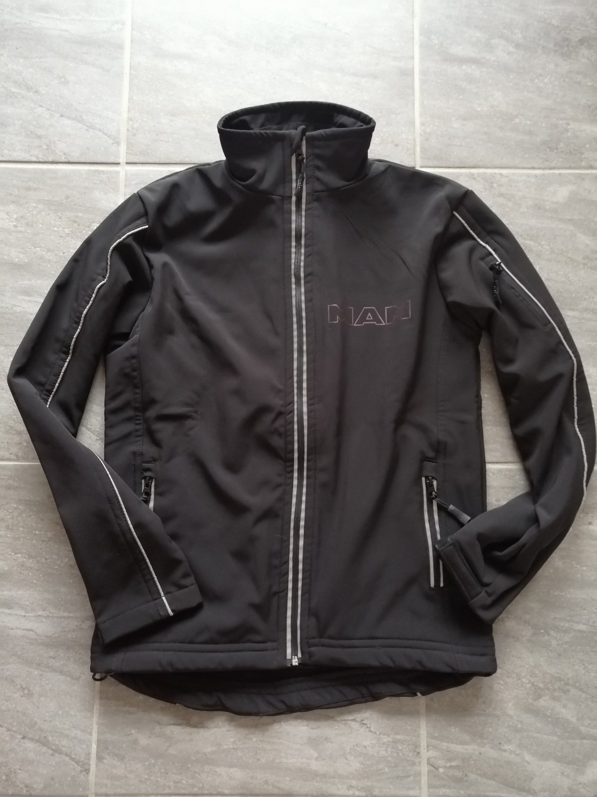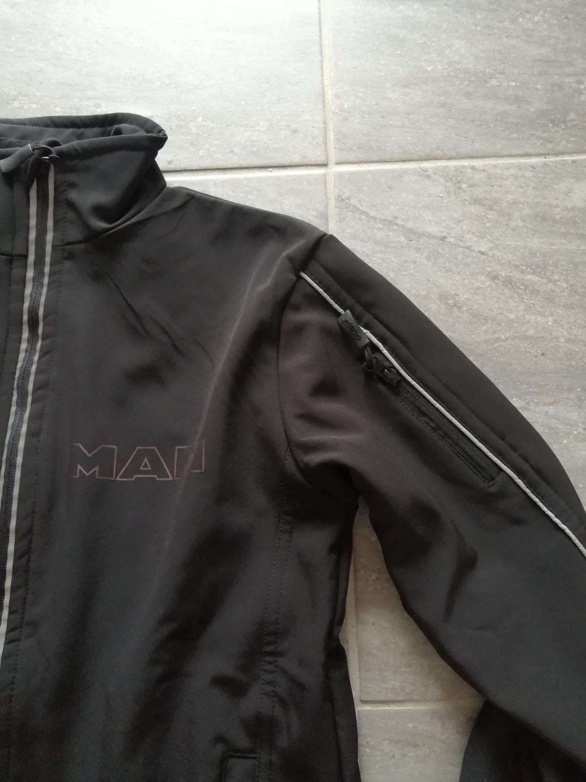 Výborný stav 99/100 ako nová, 14tis vodeodolnosť, 2tis dýchateľnosť, vrecko na rukáve, vrecko na mobil a výstup na slúchadlá, vnútri flís, zadná časť dlhšia, nastavenie spodku bundy olivkami, reflexné prvky, všetko funkčné, merch značky MAN. Pôvodná cena 92 EUR (viď stránky značky MAN).