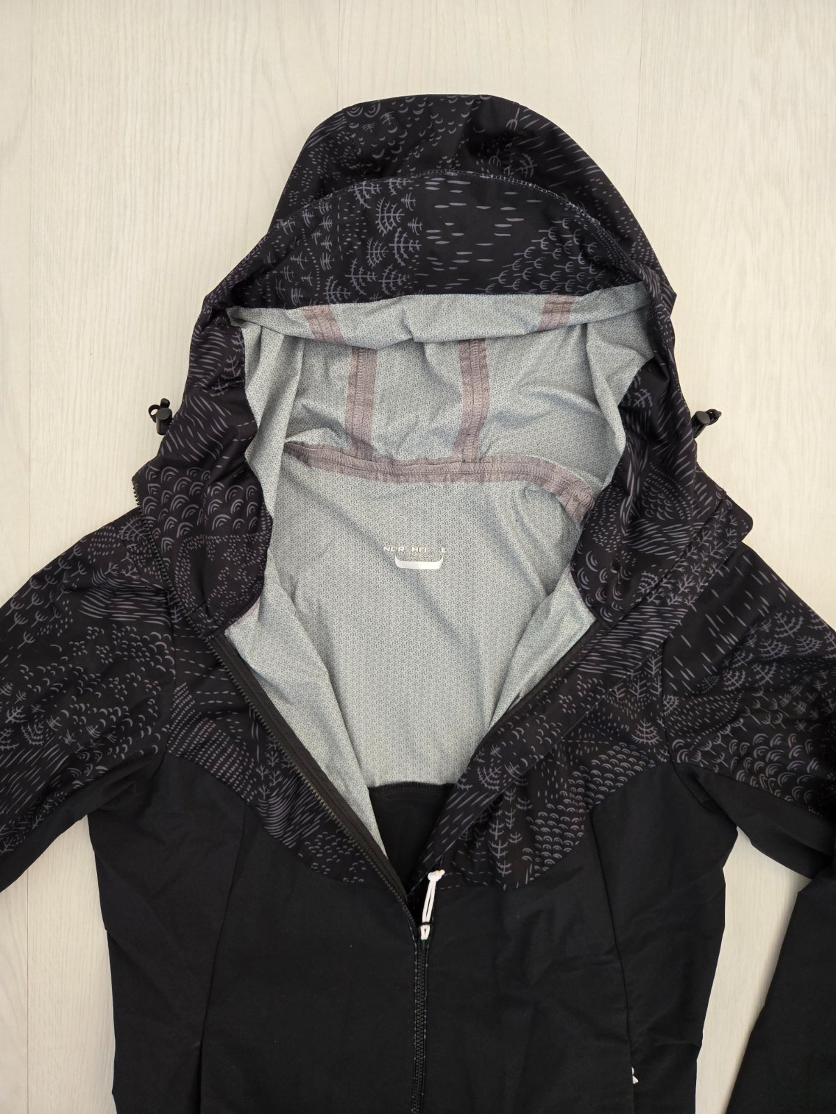 Ľahká čierna bunda, ktorú neprefúkne. Je výborná na teplejšie mikinu. Rozmery: dl.65cm, šírka 2x45cm, rukáv 60cm. Má kapucňu, vrecká na zips, na dolnom okraji gumičku na stiahnutie. Veľkosť 152/158