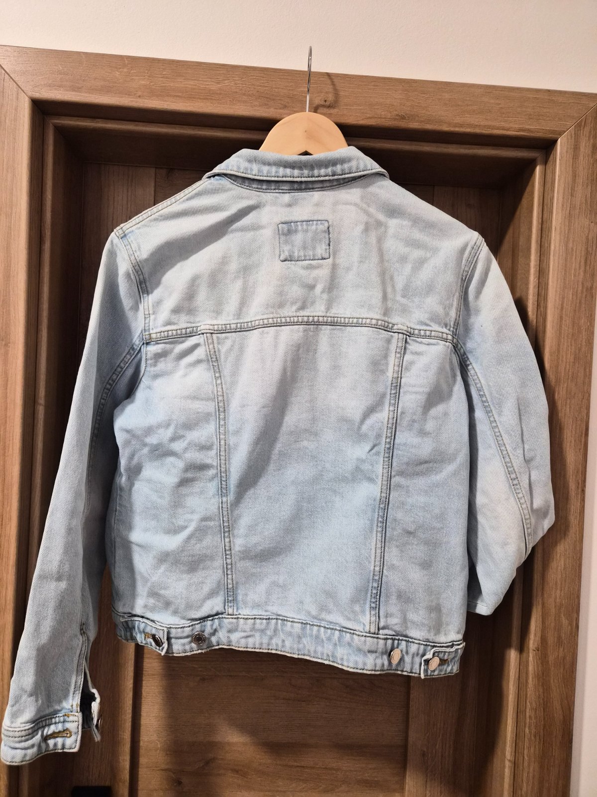 Riflová bunda s vreckami.Širka 52 x 2 cm,dĺžka 57 cm.