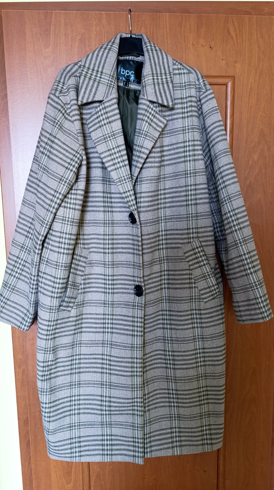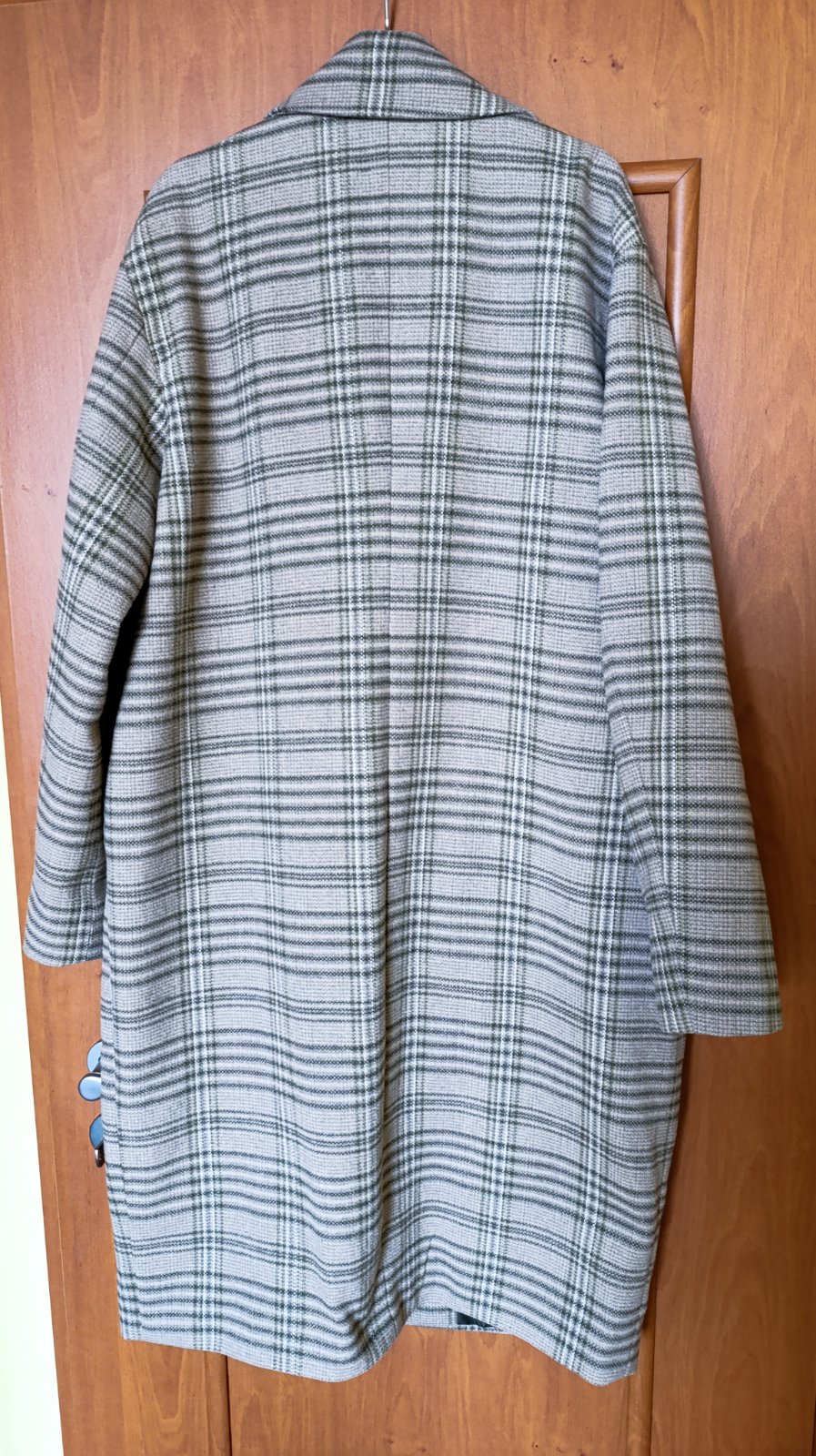Prechodný kabát rovného strihu, pri výške 165 cm siaha mierne pod kolená. Kúpený v bonprixe, oblečený dvakrát. Možno skôr na vyššiu postavu, na požiadanie premeriam.