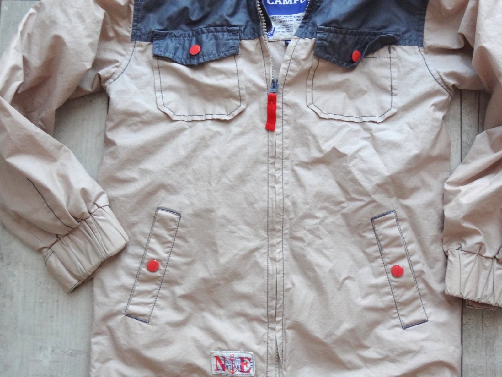 Vetrovka/bunda pre chlapcov CAMPUS, v zachovalom stave, zapínanie na zips, s vreckami, s kapucou, veľ. 122 – dĺžka 52 cm, šírka pod pazuchami 40 cm