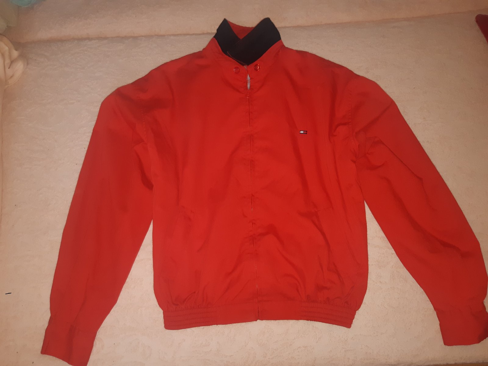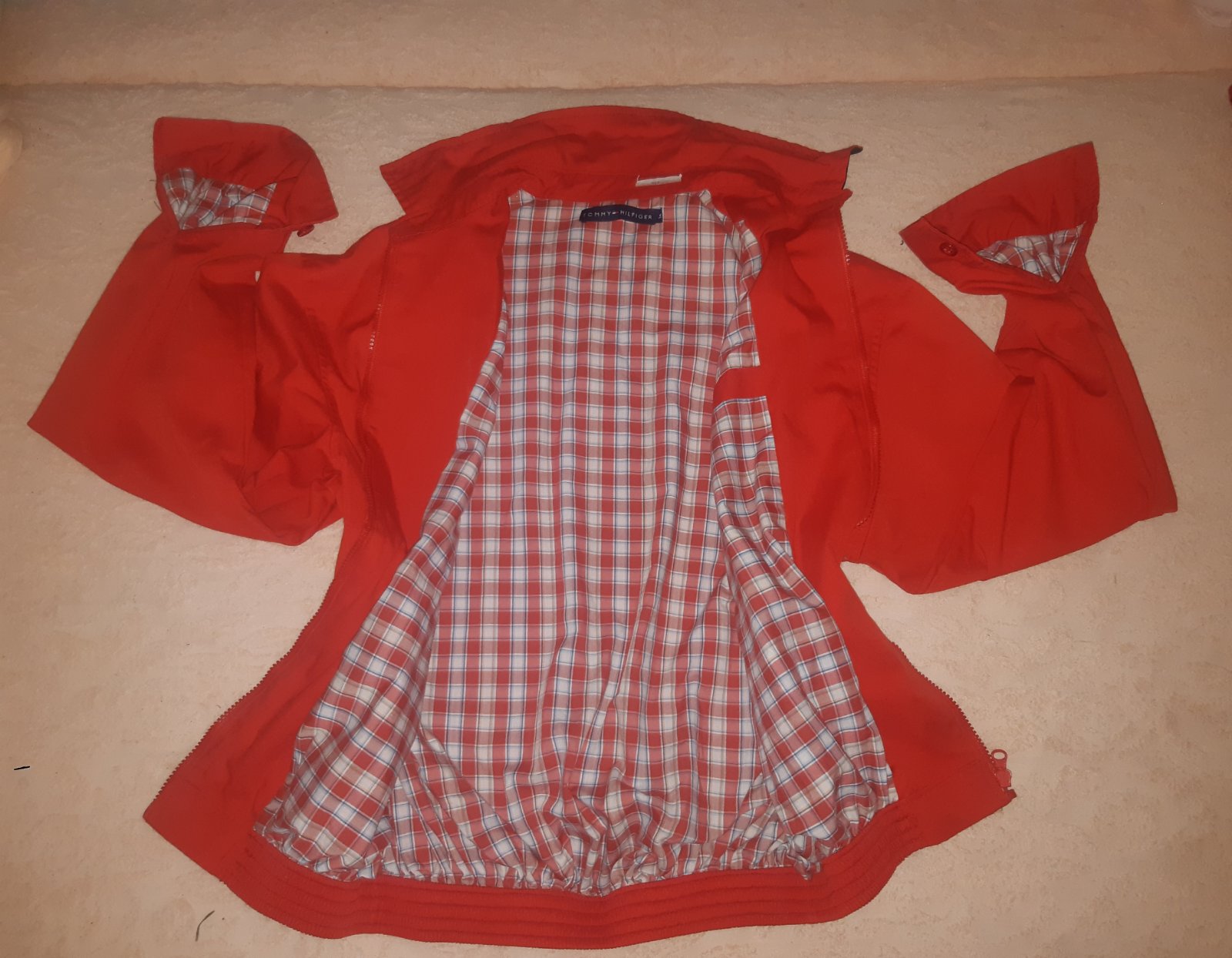 pekna prechodna bunda hilfiger červena podšita pekna farba nevyblednuta v dobrom stave pasuje na veľkosť M aj L