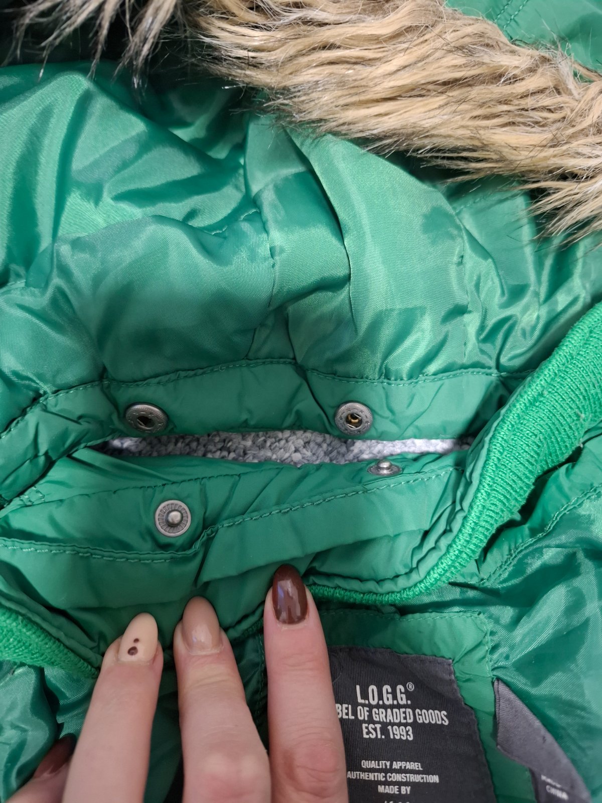 Posuvam krasnu cnlapcensku parku, kupovanu min rok , no zabudli sme na nu a uz je mala. Odopinatelna kapucna, odopinatelna kozusinka. Na rukavoch patenty