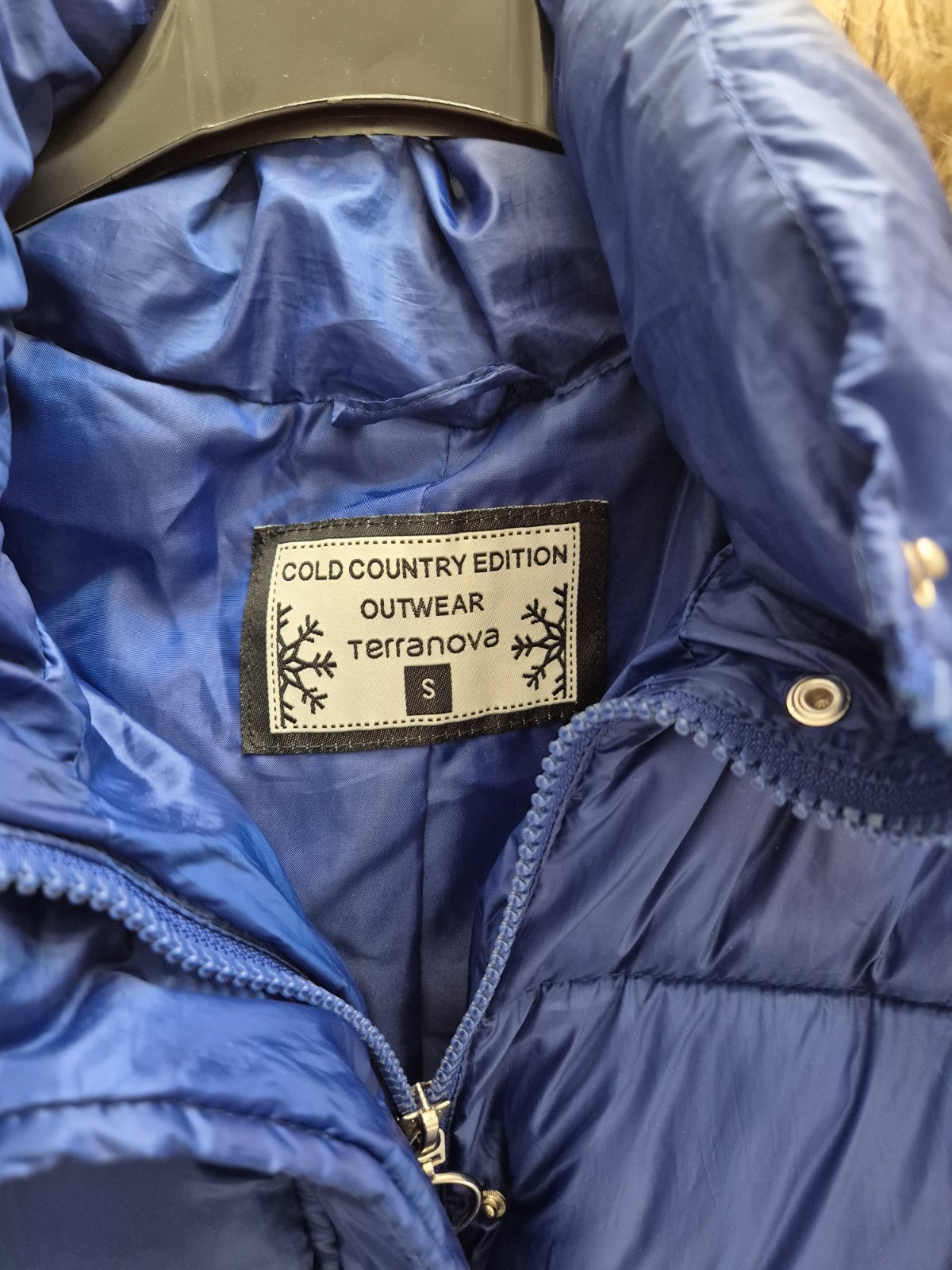 tmavomodrá zimná bunda zn. Terranova, veľ. S, nosená, ale veľmi zachovalá, len na lemovaniach sú žmolečky celková dĺžka 58 cm rukáv 61 cm šírka pod pažami 2x 48 cm