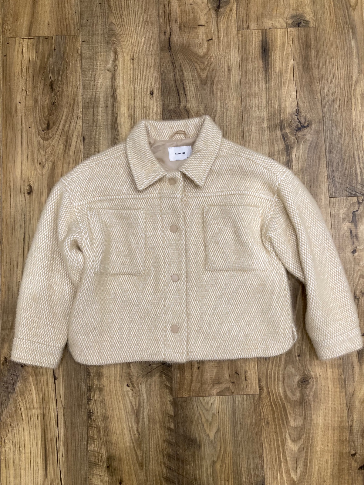 Lahka prechodna bunda s chlpatym rukavom. Ako nova.