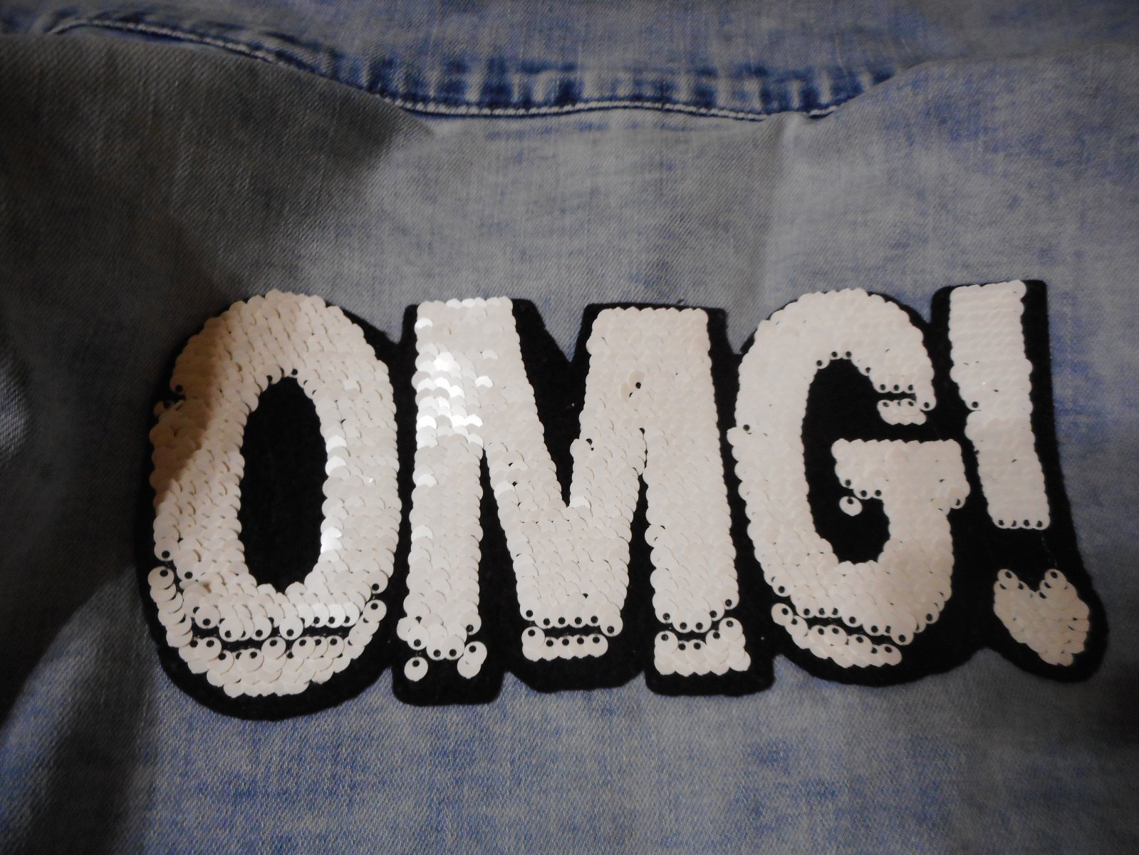 predám používanú, nepoškodenú veľmi peknú dievčenskú riflovú bundu so svetlej modrej šúchanej rifloviny zn. Street Model veľkosť 134/140cm vzadu na chrbte s úžasným flitrovým nápisom OMG!, vpredu 2 ale len falošné vrecká, zapínanie na gombičky. Celková dĺžka bundičky je 46cm, šírka pod pazuchami je 40cm. Vonkajšia dĺžka rukávu od šitia ramena je 48cm, vnútorná 39cm