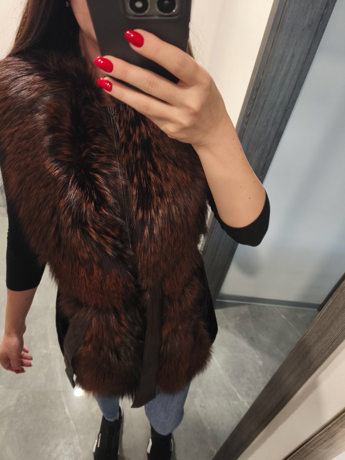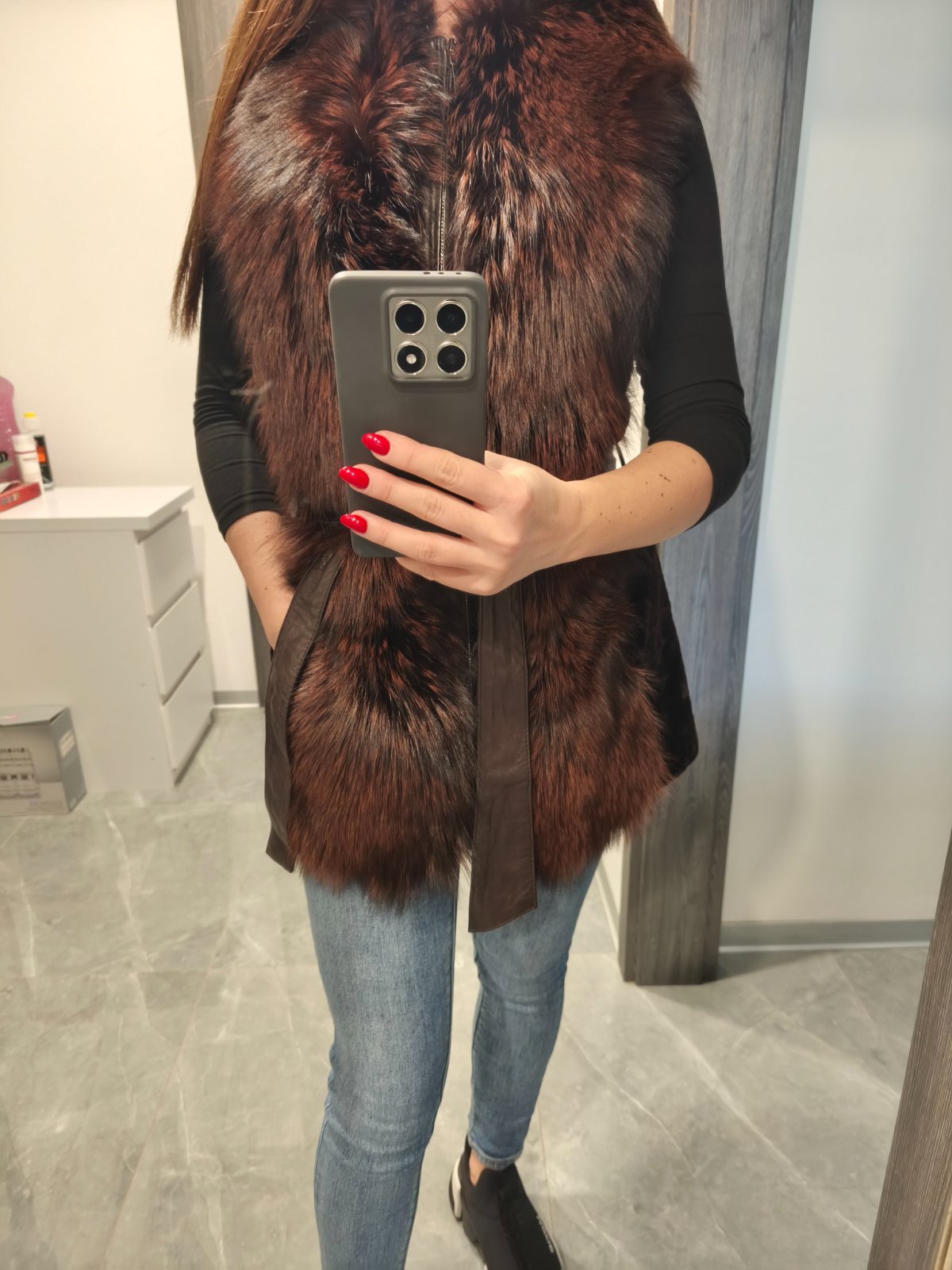 Krasna kozusinova vesta z lisky