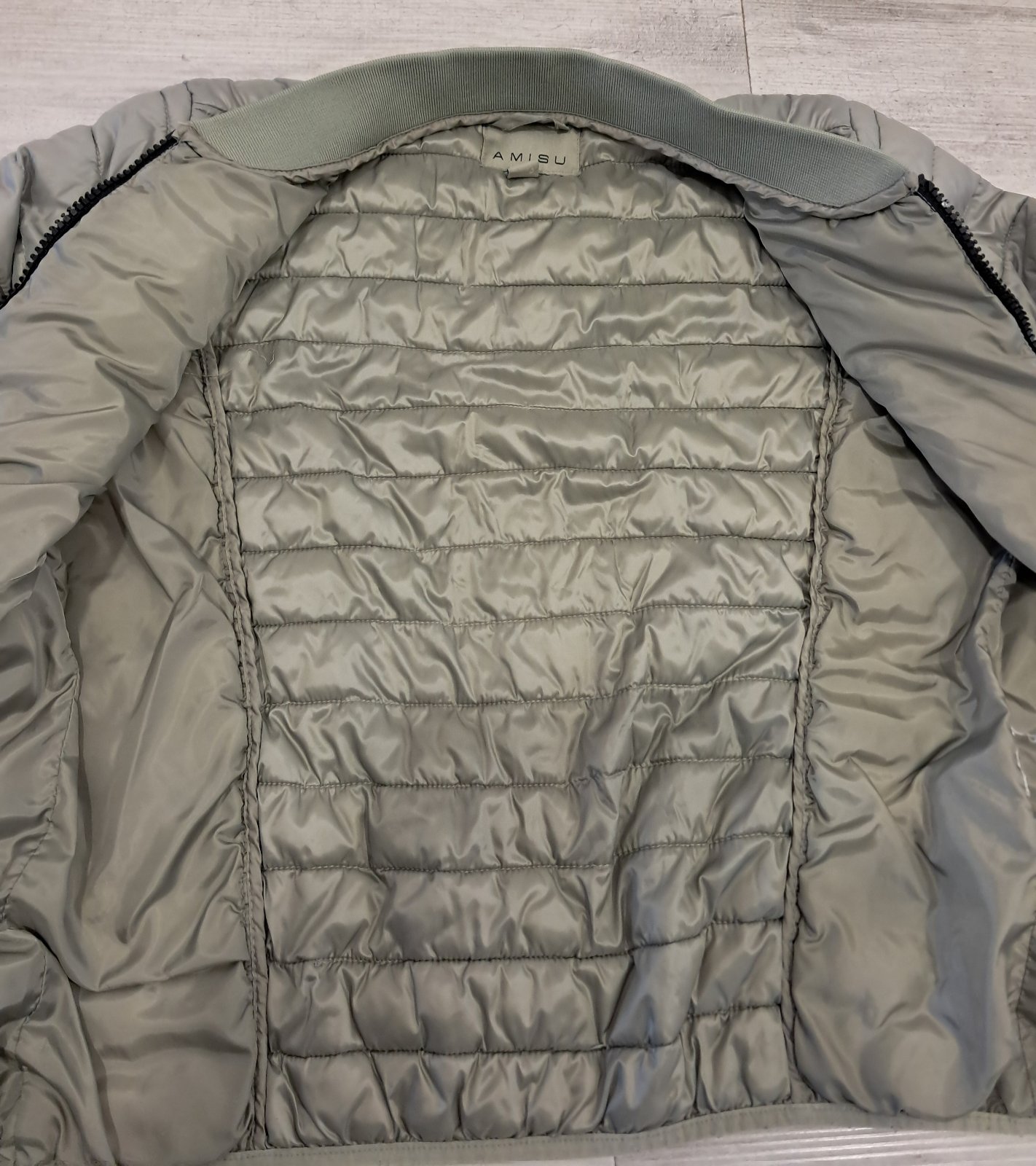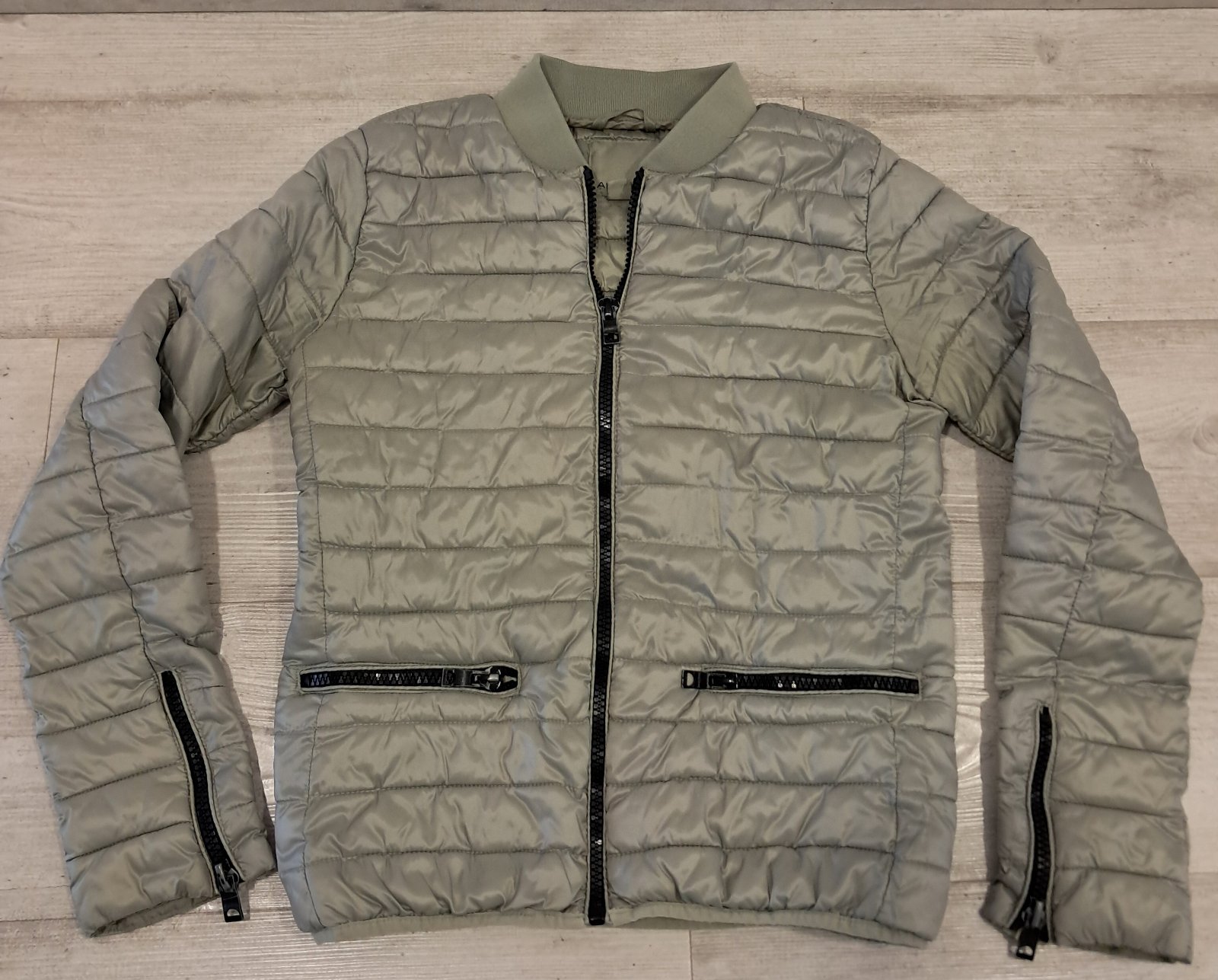 Predám krátku prechodnú bundu, veľ. 38/M, zn. AMISU, jediné poškodenie - na zipsoch jemne ošúchaná čierna farba, inak pekný nosený stav.