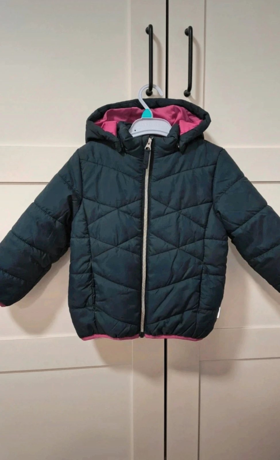 Oblečená 3krát, takže ako nová. Vhodná na prechodné obdobie. Kapucňa sa dá odopnúť. Veľkosť 98. Celková dĺžka 42cm, dĺžka rukáva 36cm.