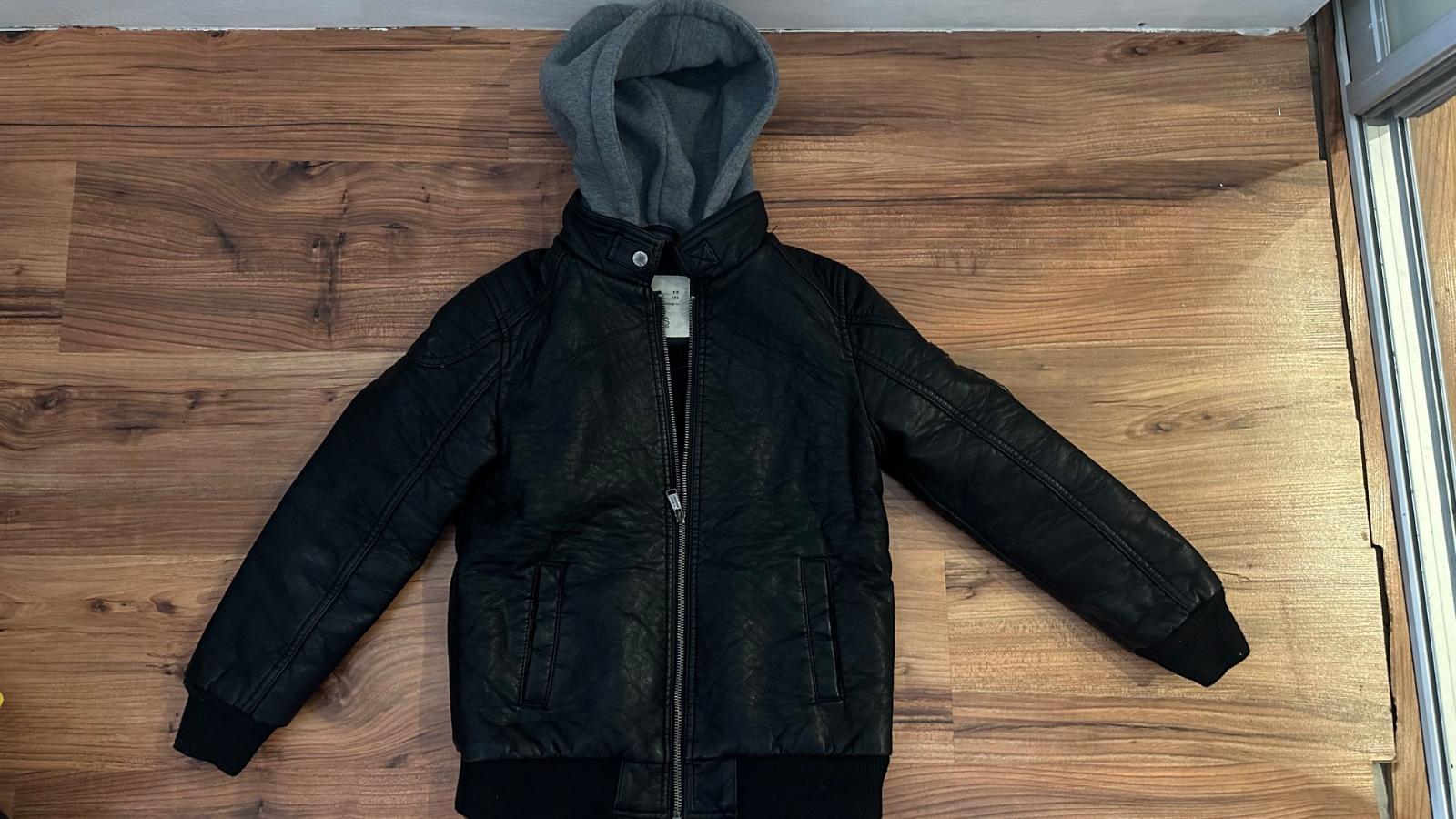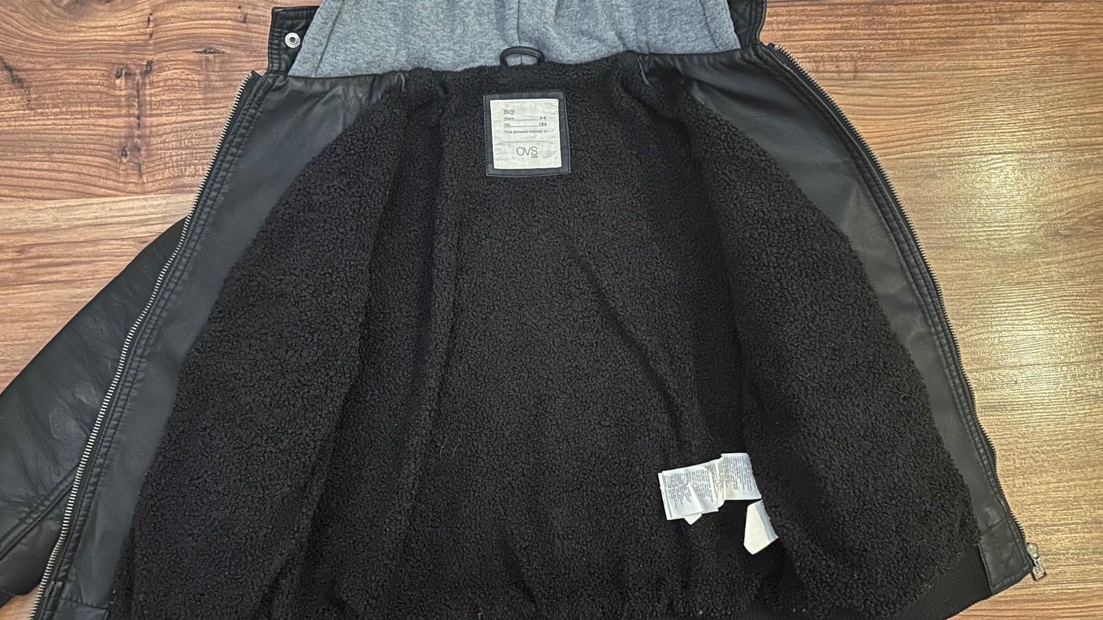 Cierna hruba kozenkova bunda podsita umelou kozusinou na zips s kapucou bunda je ovela hrubsia ako maju bezne kozenkove bundicky zara a hm