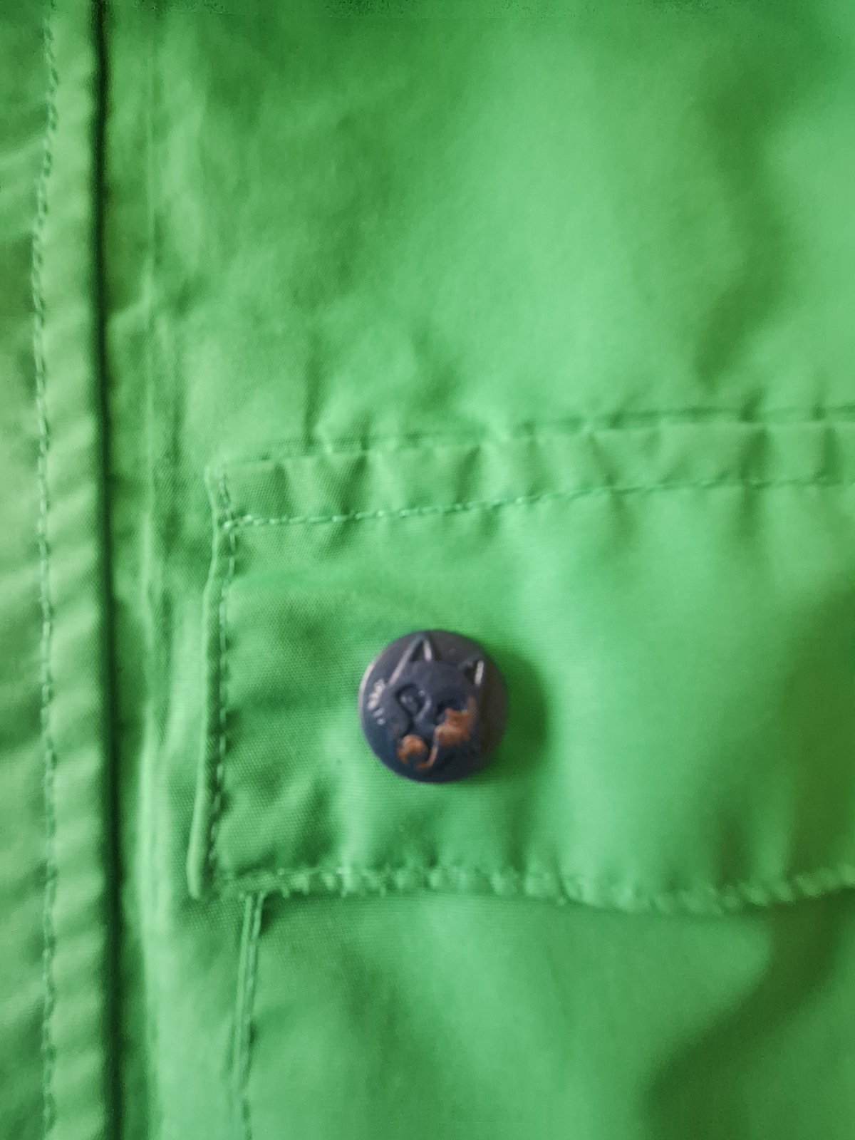 Predam, bundicka bola nosena, ma krasnu zelenu farbu, mierne zateplena na prechod, zips funkcny. Male chybicky krasy, šuchnuty gombicek a male zatiahnutie na vrecku (nie je tam diera), kludne aj do skolky. Dlzka 40/42cm, sirka 35cm, rukav od krku cca 40cm. Cena prisposobena.