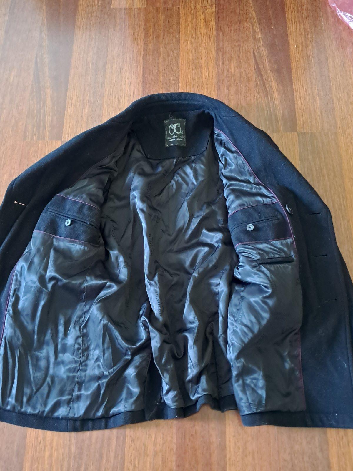 Friends & lovers vlneny pansky kabat, velkost 48, 55% vlna, rozmery: dl.71cm s. 2x 48cm, dl.rukava 64,5cm