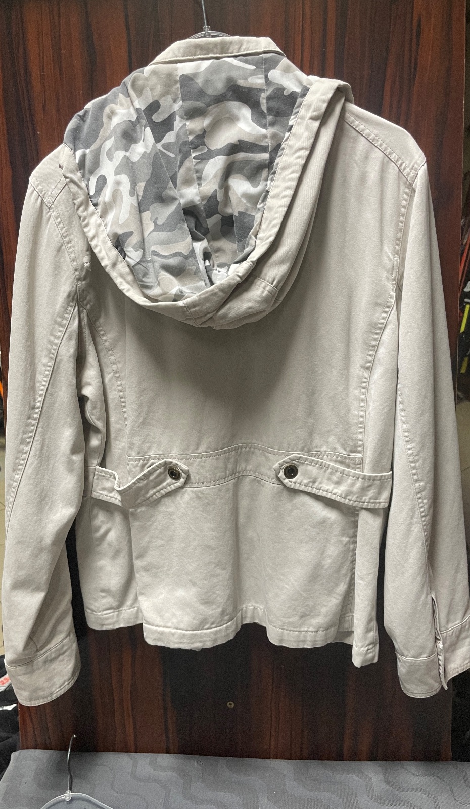 Ponúkam ľahkú bundičku bez podšívky s viacerými vreckami veľmi peknej bledej farby. Dĺžka 65 cm, hrudník šírka 57cm x 2, rukávy 64 cm; len opratá, nepoužívaná. Cena 8,50 EUR. Odber osobne v MT príp...
