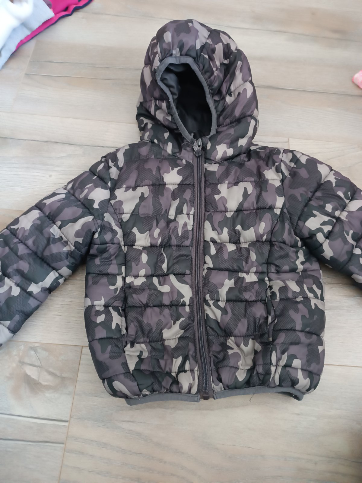 Zimná bundička kupovana v Kiku - bez chýb alebo poškodení. Bola oblečená tak max. trikrát lebo sme toho mali veľa v tú zimu keď bola synčekovi dobrá. Kapucňa je odopínateľná.