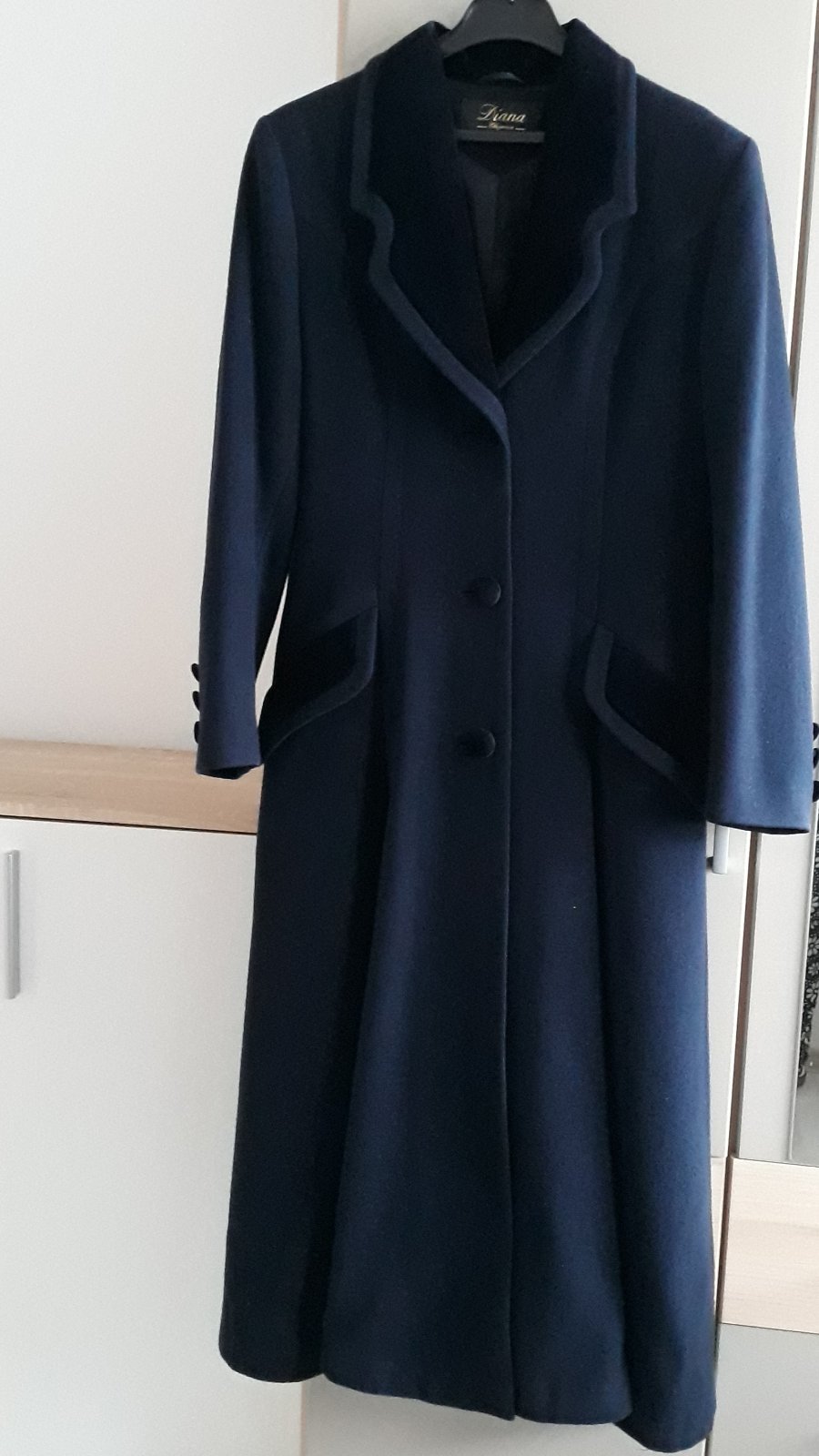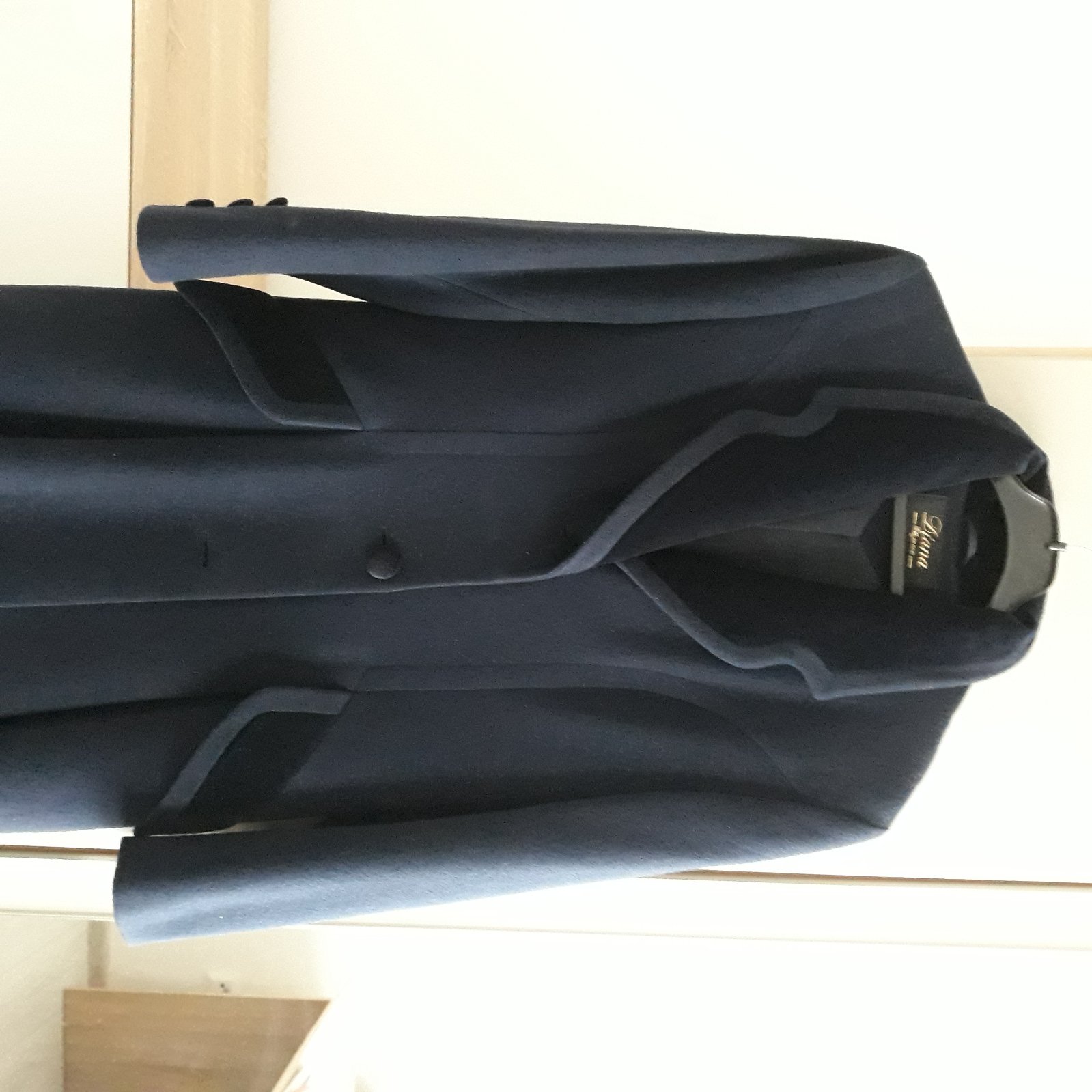 Predám dlhý tmavomodrý kabát slovenskej výroby VZORODEV, veľkosť č. 40. Zloženie: 100% vlna, podšívka 100% polyester, pekne tvaruje postavu.