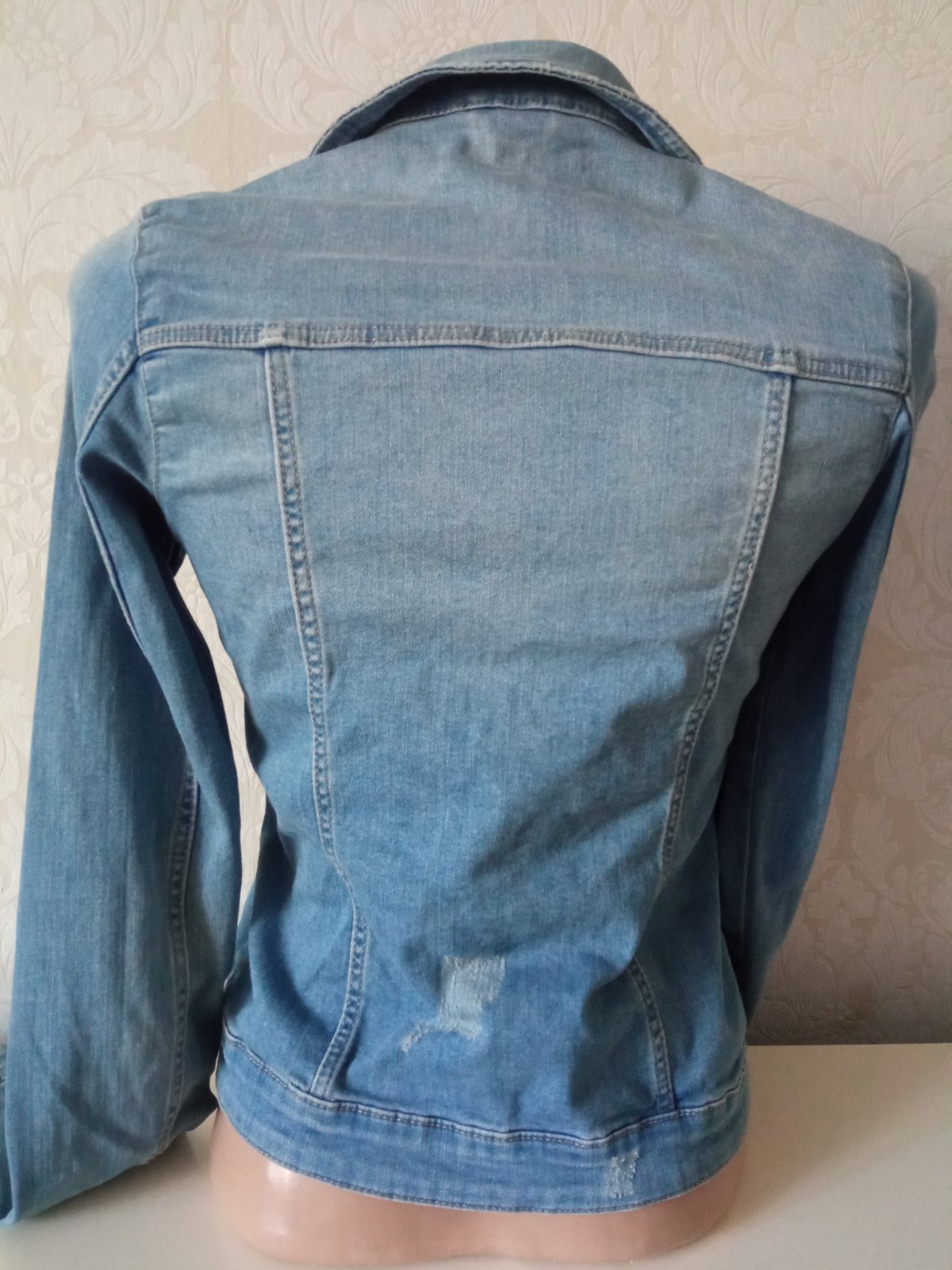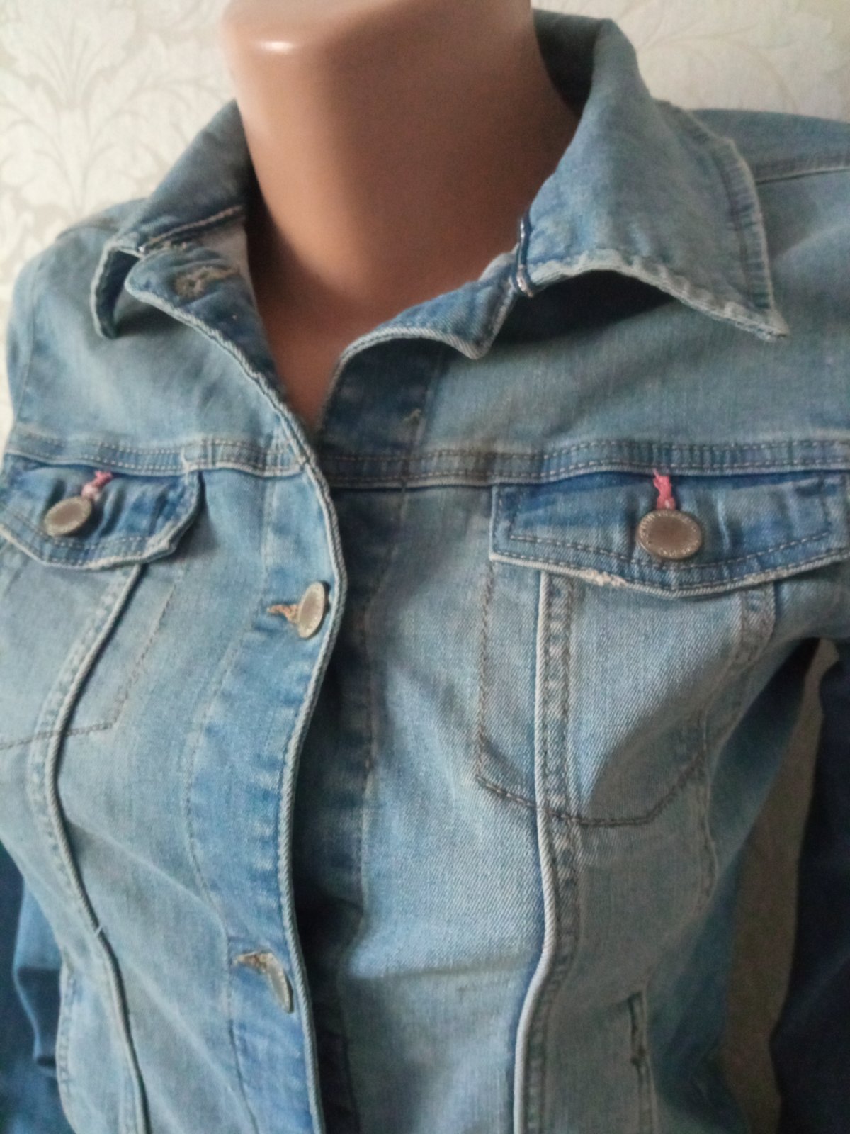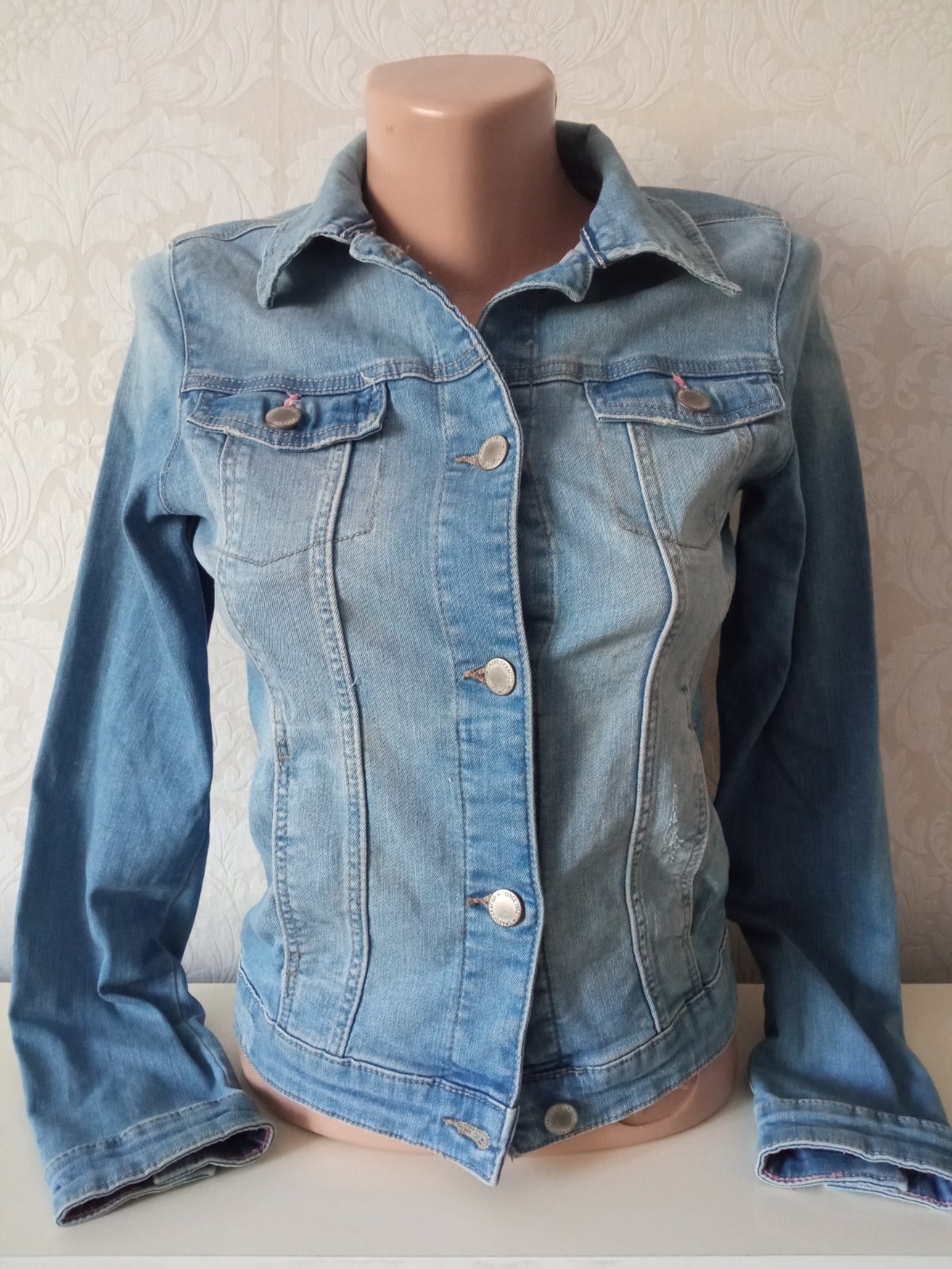 Dievčenský rifľový kabát, tenký, štyri predné vrecká, zapínanie na gombíky, elastický, materiál 98% bavlna,2%ekastan.