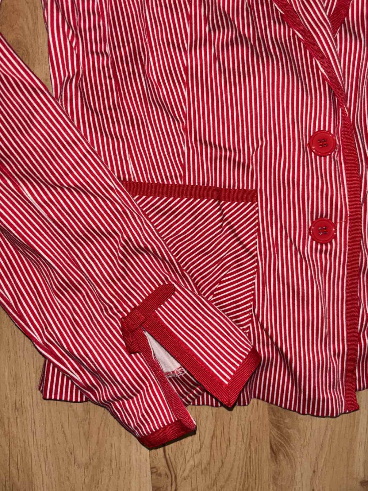Výborný stav, veľmi pekne šité,bielo-cervene, veľkosť UK 12,EUR 38,jemne pruzi,š.48 cm,d.58 cm