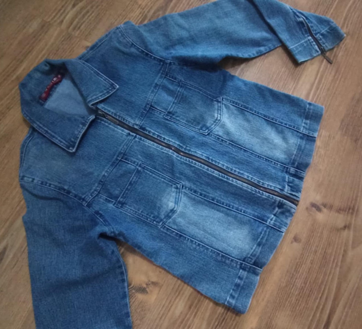 bunda je v peknom stave,málinko nosená. Dlhá 56cm, šírka pod pazuchou 46cm x2, rukáv 56cm.