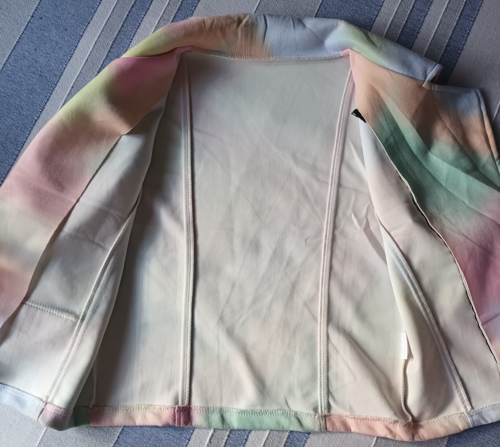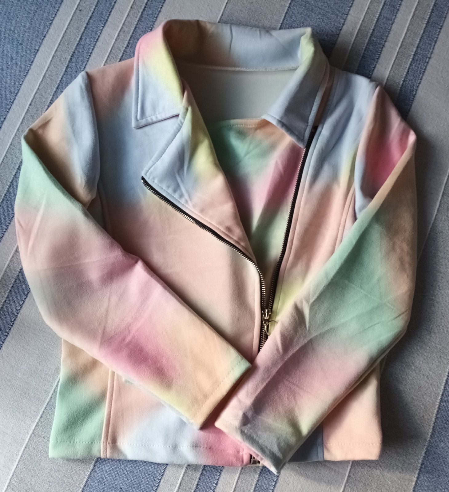 Krásne, farebné sako v pastelových farbách. Sako je bez poškodení. Šírka cez prsia 38cm, dĺžka saka je 49cm q dĺžka rukáva od ramena je 52cm. Cena 12 eur plus poštovné.