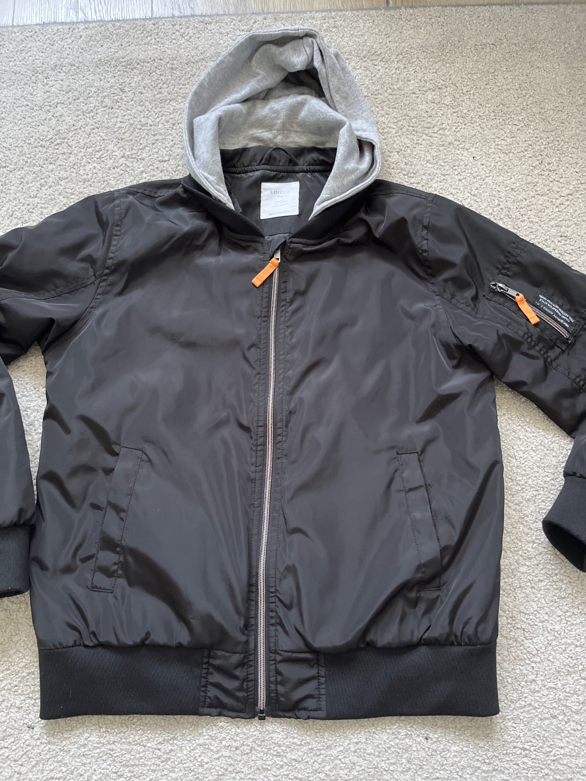 Predam bundu bomber Lindex, v 152, super stav. Kapucna sa da odopnut. Dlžka rukava s plecom 67 cm, zadna dlzka 60 cm, sirka v hrudi ca 53 cm