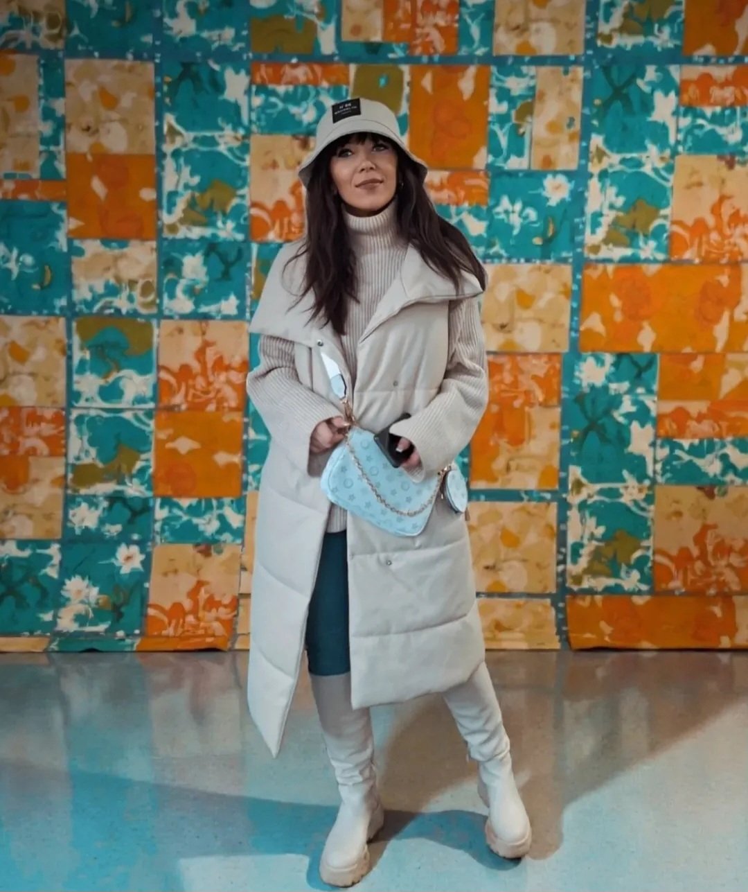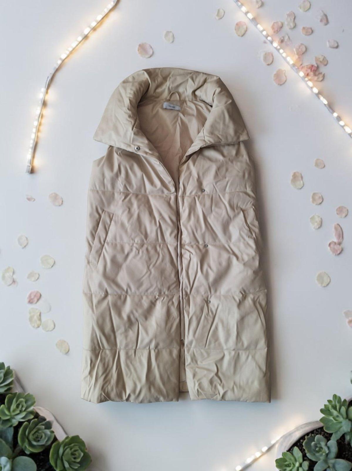 Dlhá béžová koženková vesta