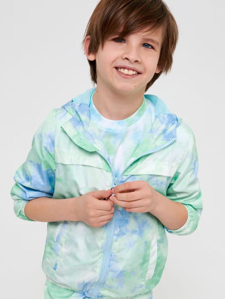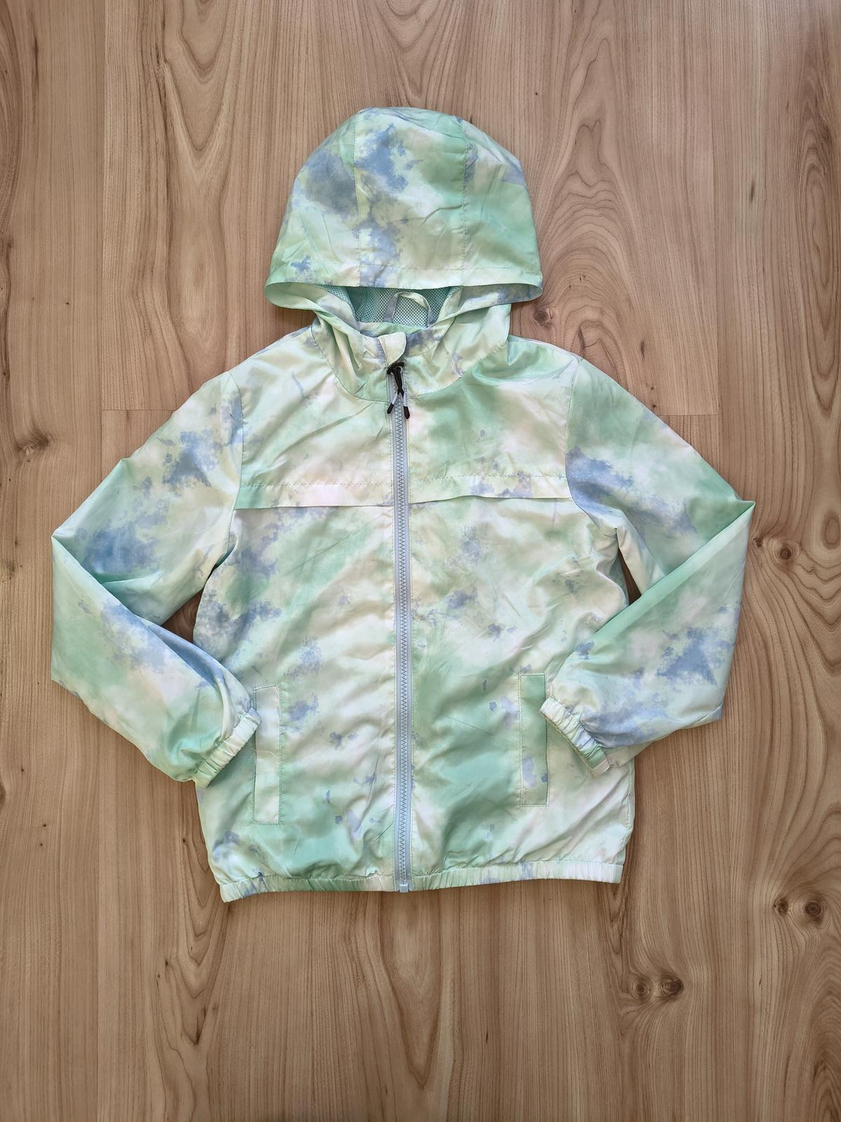 Krásne farebná, prechodná bunda, má dve vrecká na zips, kapucňu, po celej dĺžke zapínanie na zips. Veľkosť 134, dĺžka 49cm, šírka 2x41cm, rukáv od ramena 47cm.