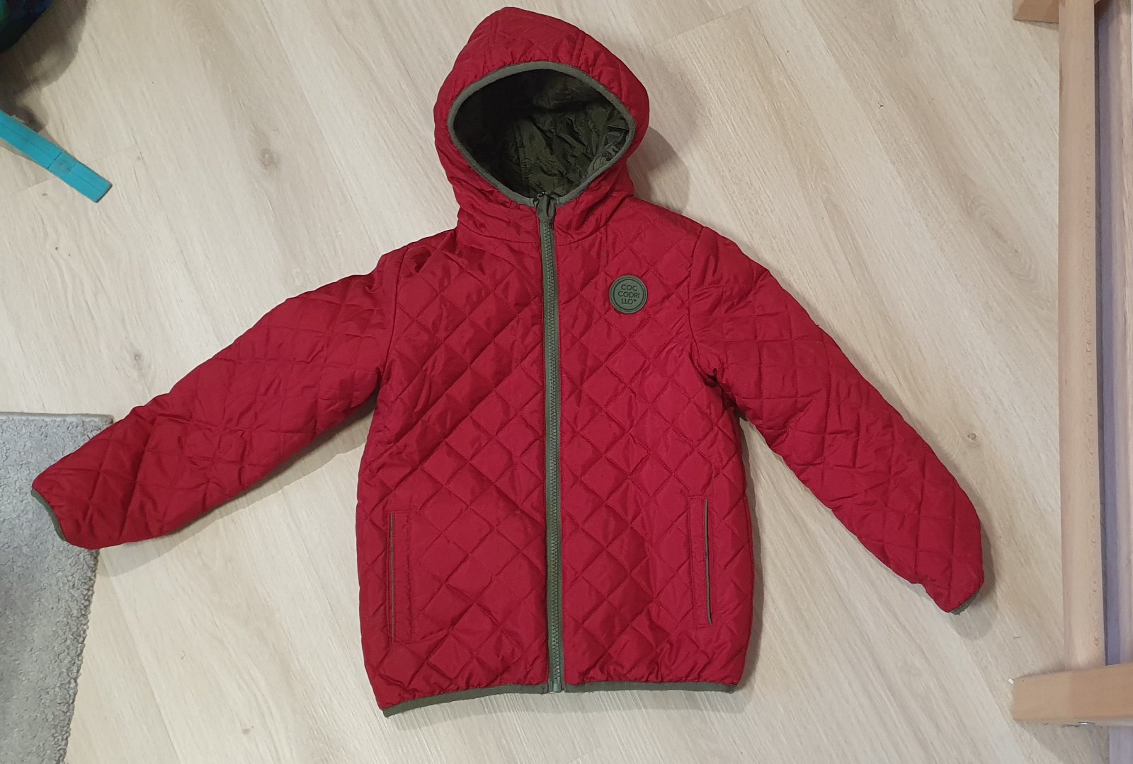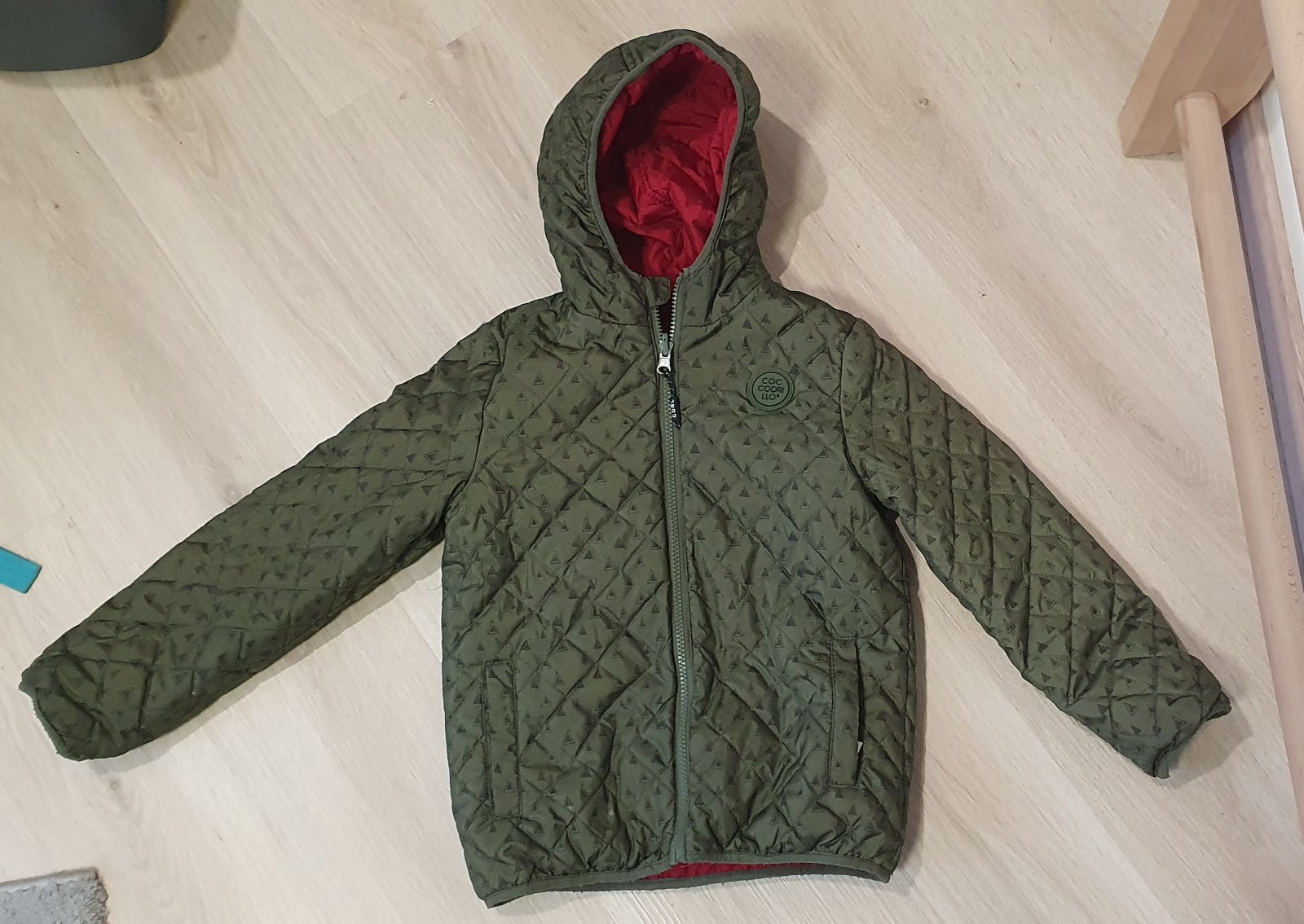 Obojstranná bunda, ľahká, pohodlná, bola naša obľúbená, tak viac nosené, na spodu rukávov a bundy na gumičke drobné zmolky, zohľadňujem v cene, snazila som sa vyfotit, funkčne je v poriadku, iste ešte posluzi
