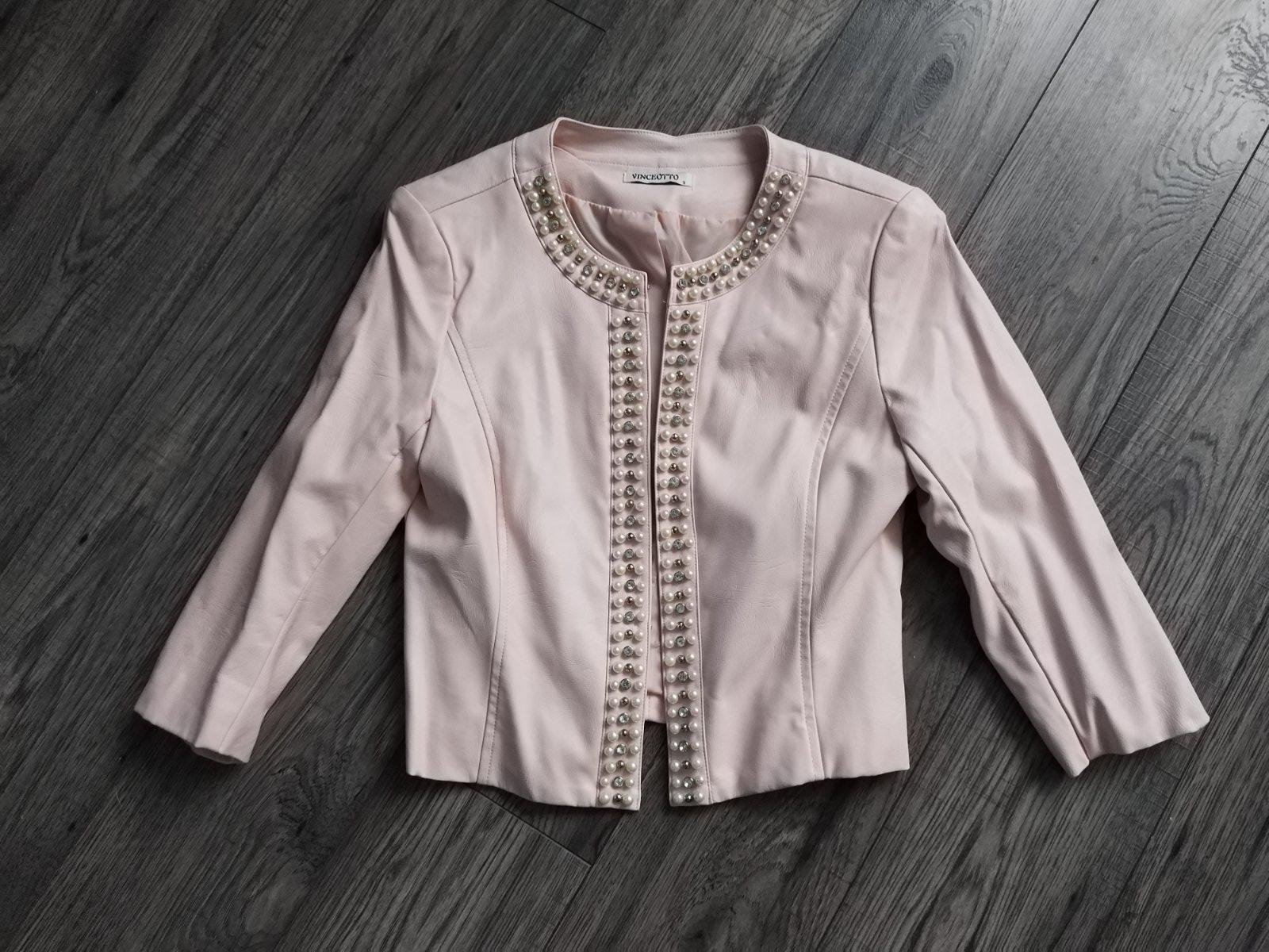 Krásna ružová koženka s perličkami, podšitá, cca 2-3x oblečená, výborný stav, bez poškodenia.
