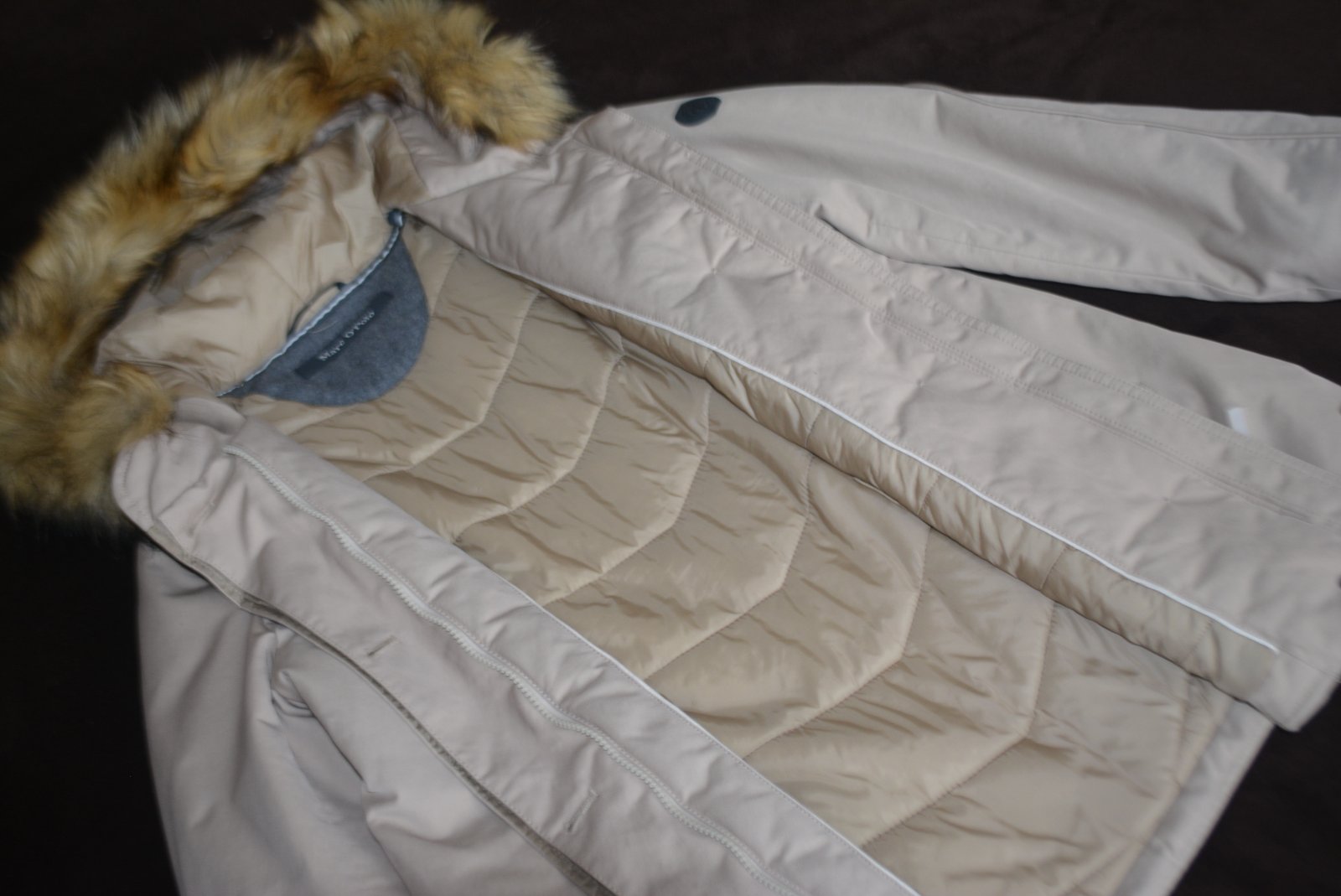 Kvalitná dámska bunda na zimu, zn. Marc O'Polo, veľ. L - rozmery: dĺžka 73cm, pod pazuchami 2x55cm, rukáv od krku 74, od pleca 62 a od pazuchy 46cm.