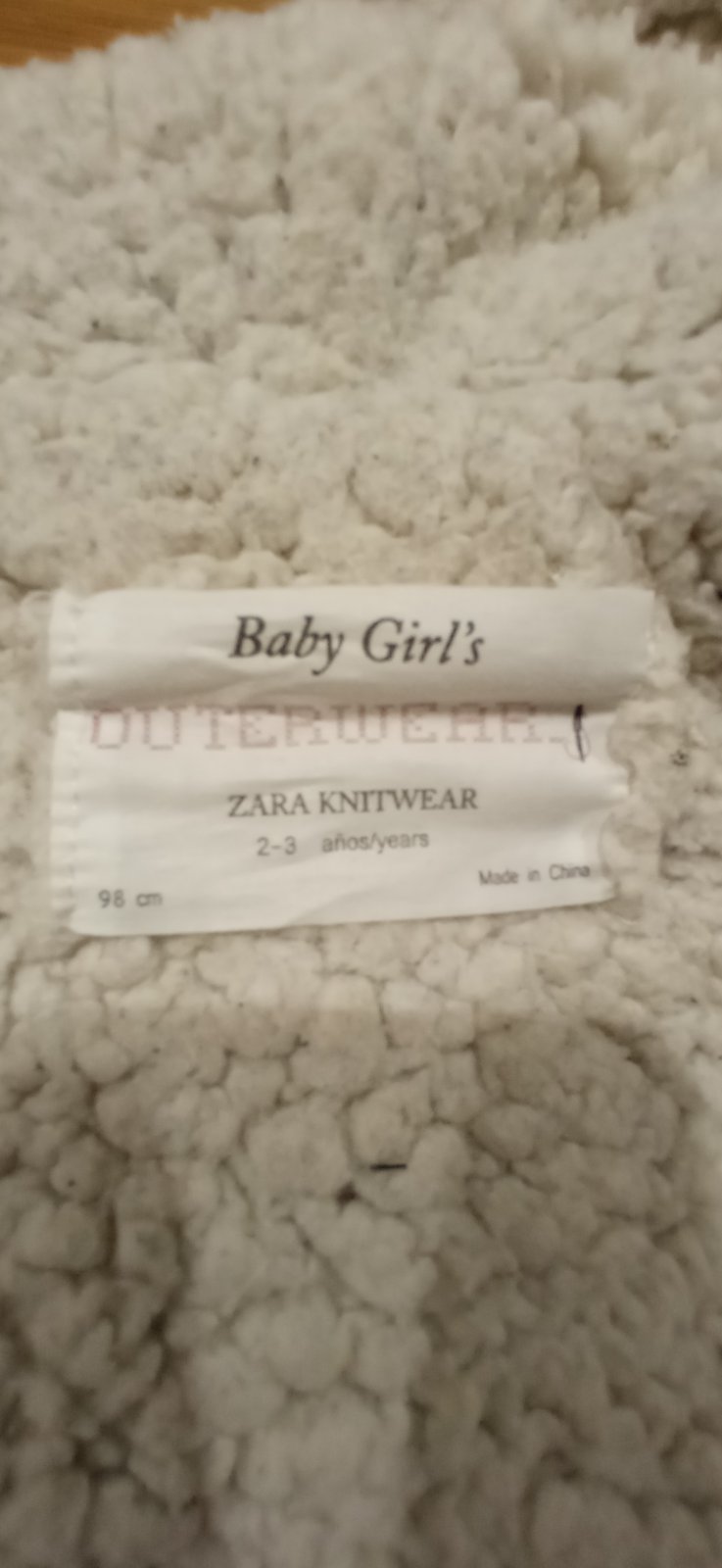Predám dievčenský teplý kabátik značky ZARA. Veľkosť udávajú 98 ale je to skôr 92. Veľkosť 98 vhodná iba ak som dala dcérke iba ľahké tričko bez svetra.