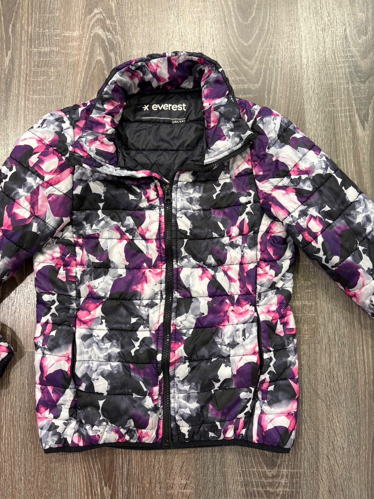 012.Everest štylova dievcenska prechodna vetrovka vo velkosti 146/152,fakt krasna.Dlzka je 53cm,dlzka rukava od krku je 65cm a sirka v podpazusi je 40x2cm