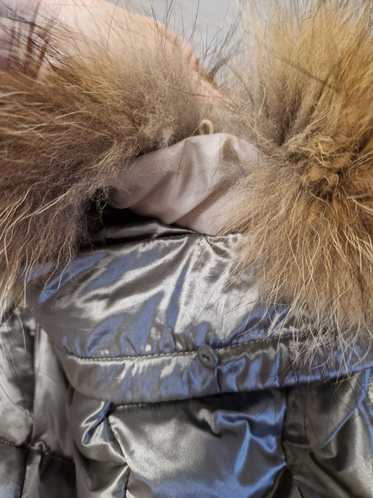 Málo nosená, super stav. Krásne prepracovaná, nádherná farba ,odopínateľná kožušinka. Farba je taká sivohnedozelená, ani ju neviem definovať. Efektné zipsy po bokoch. Pekne sedí na postave. Je to veľ. M, ale mne je úzka, tak dávam pod S. Šp paz 50, pás 42, dĺžka 86. Rukáv s plecom 9+64. Jedine malé 5cm zatiahnutie vpredu cca 3cm od spodu.