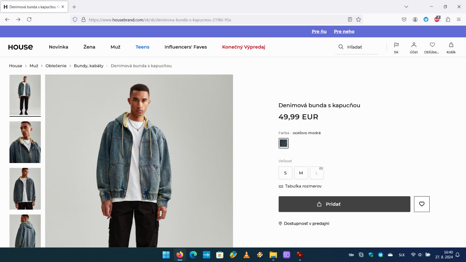 Ďalej predám pánsku riflovú bundu House s kapucňou, veľkosť L. Bunda je nová. Cena 30eur.