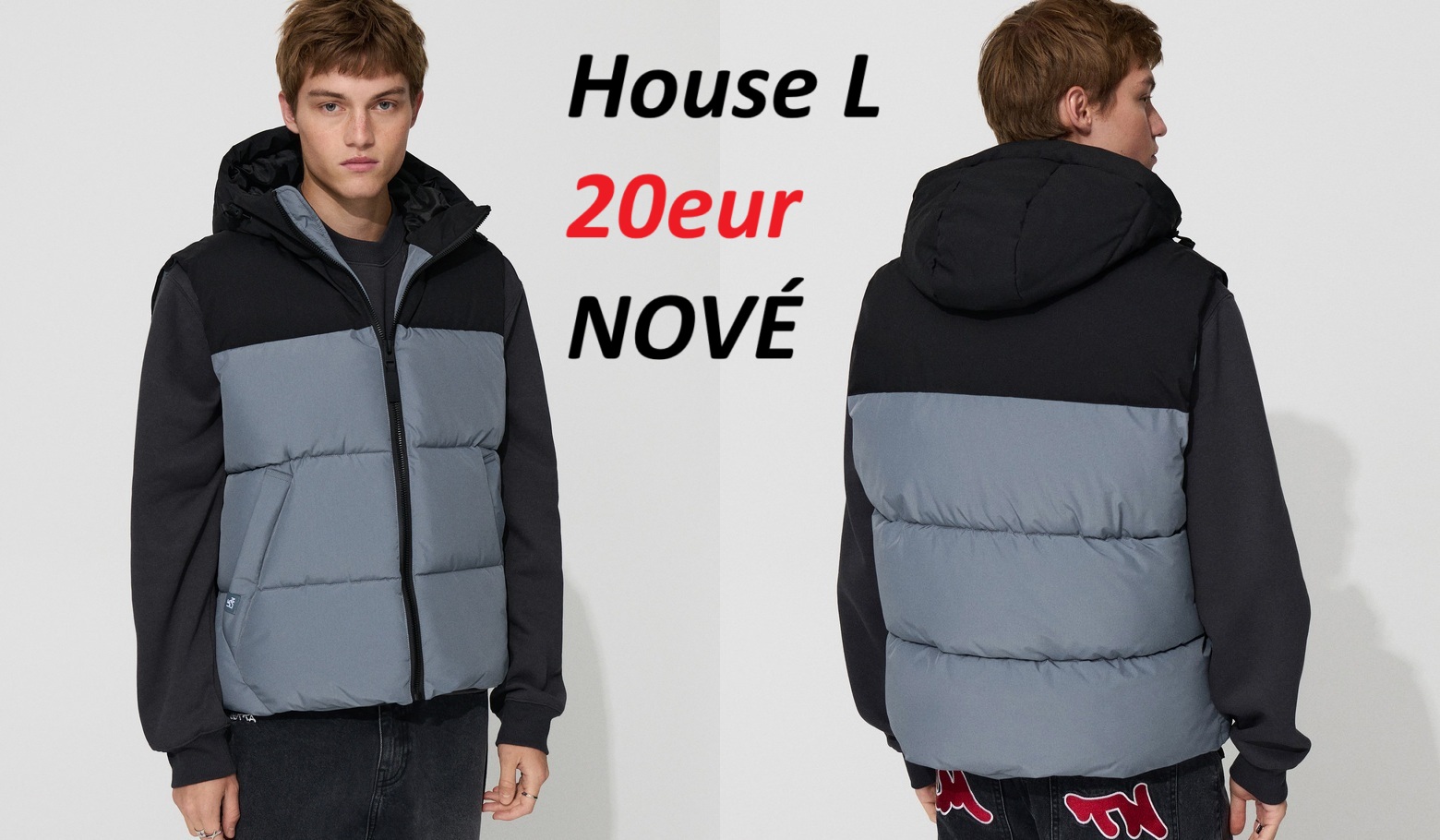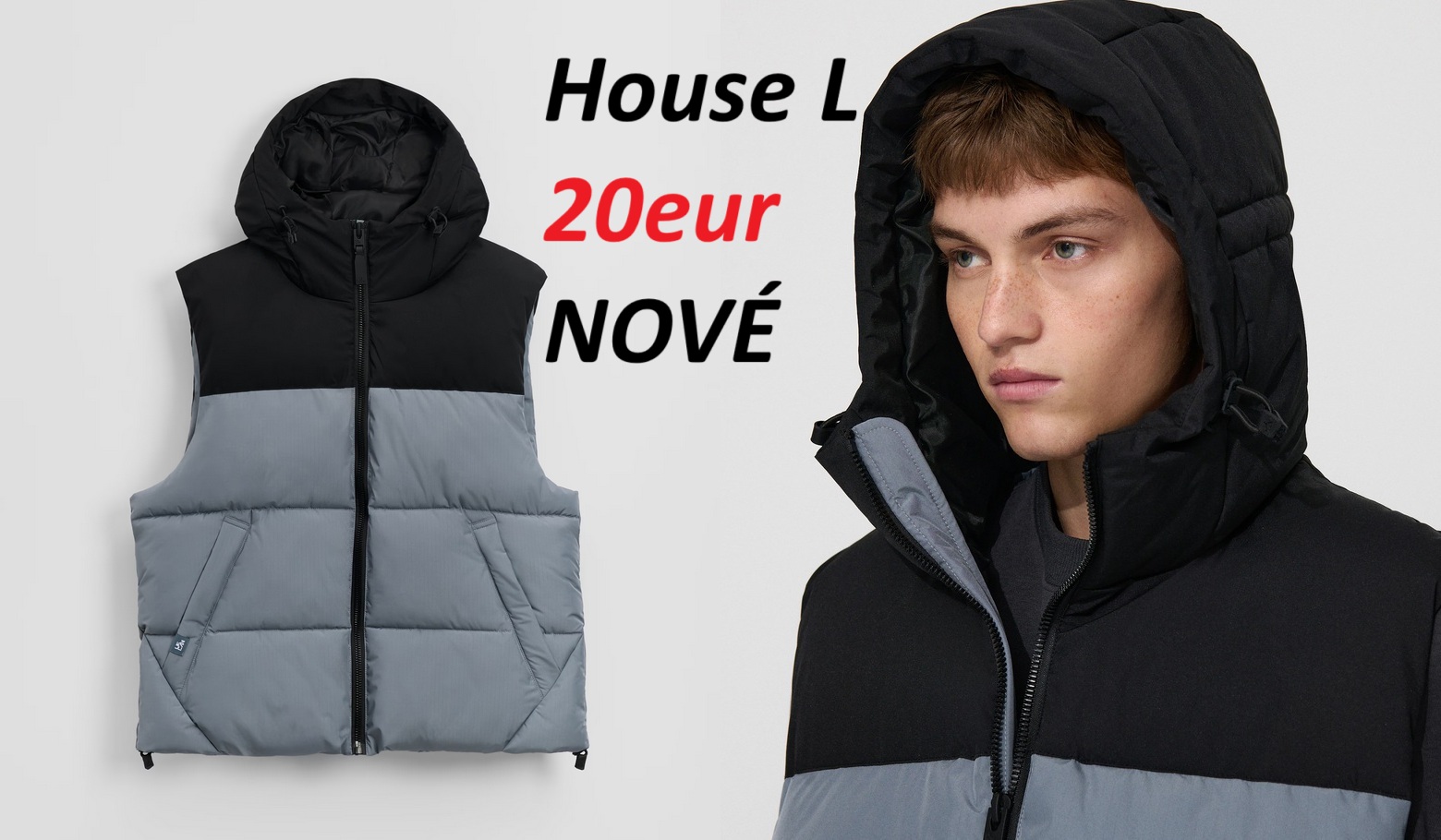 Ďalej predám pánsku dvojfarebnú vestu House s kapucňou, veľkosť L. Vesta je zateplená, má 2 vonkajšie vrecká na zips, 1 vnútorné vrecko na suchý zips, sťahovacie patenty na kapucni a naspodku vesty. Vesta je nová. Cena 20eur.