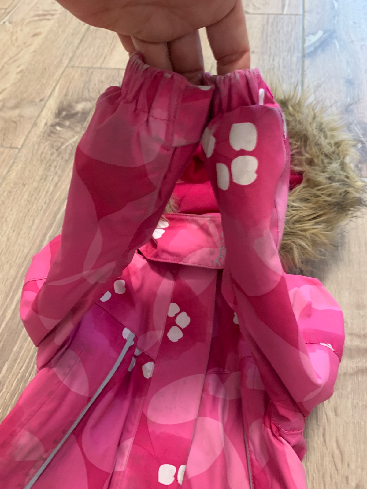 Kapuca odnímateľná, po bokoch 2 vrecká, v páse sa dá stiahnuť Značená ako 92, sedí aj ako 98.