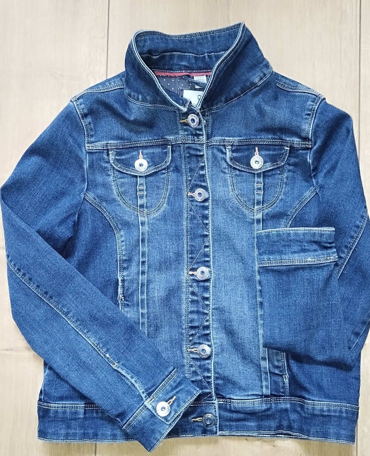 Veľmi pekná rifľová bunda pre dievča, veľkosť 140 / na 10 rokov. Francúzska značka OKAIDI. Bez poškodenia. Cena 8 € + poštovné podľa výberu.