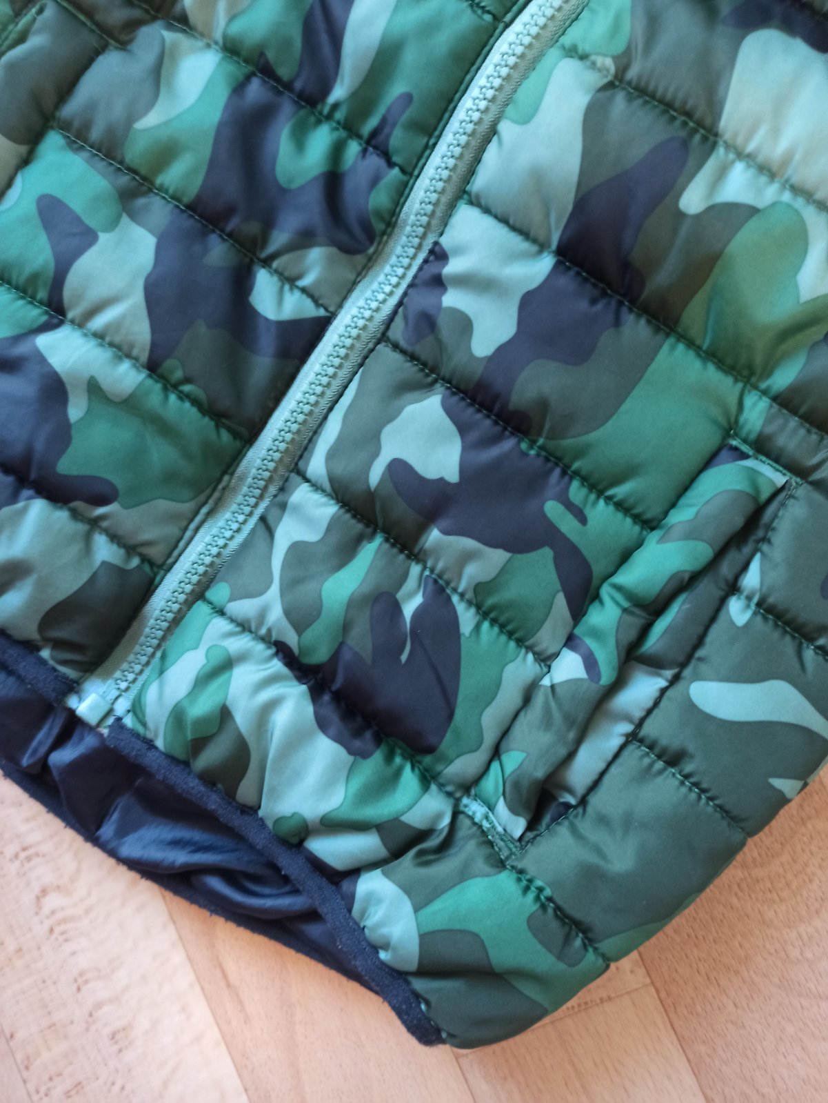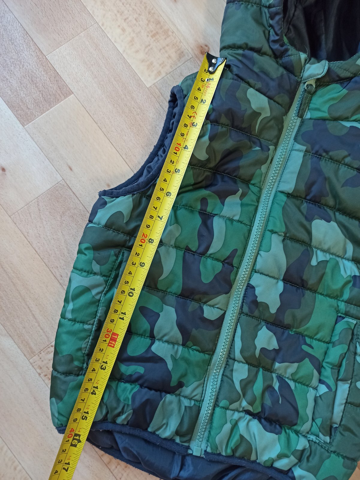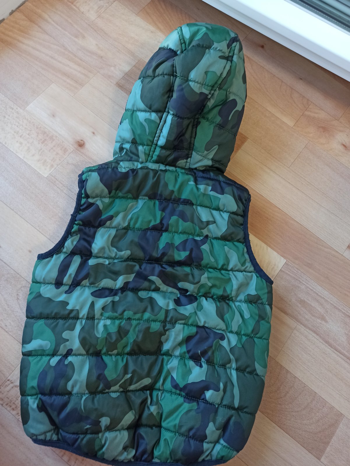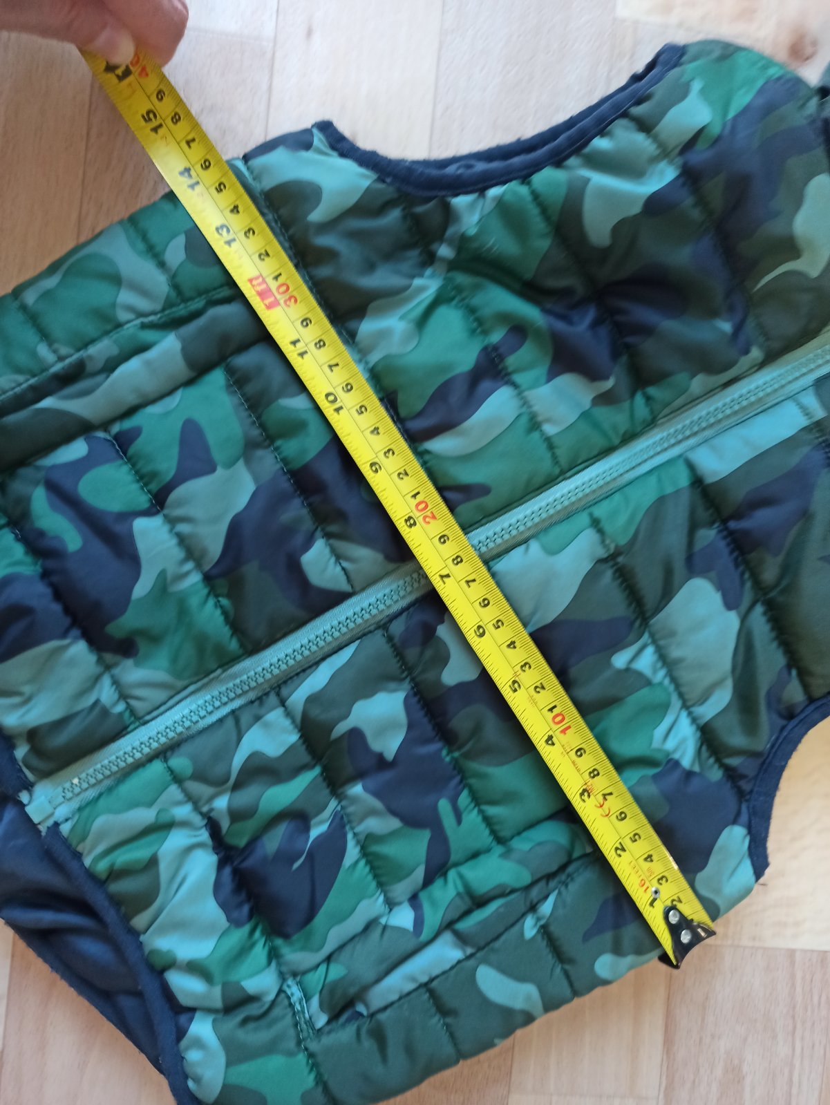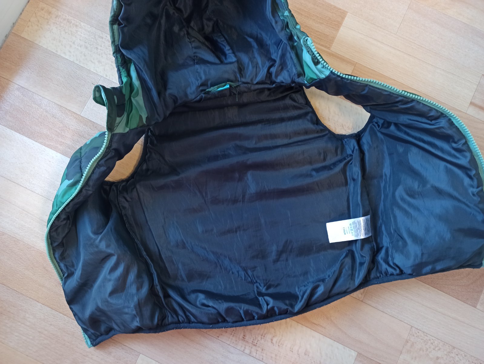 Obojstranná vesta krásnej zelenej, alebo modrej farby. Bez poškodení. Veľkosť 116/122