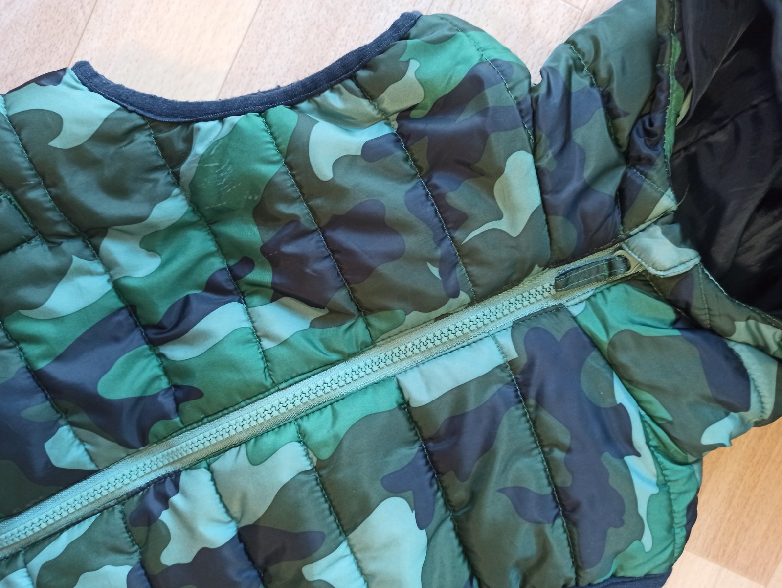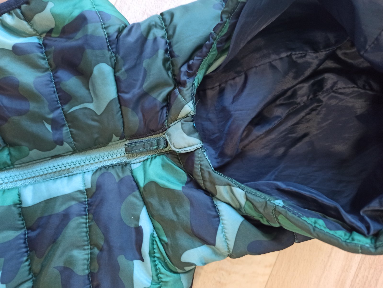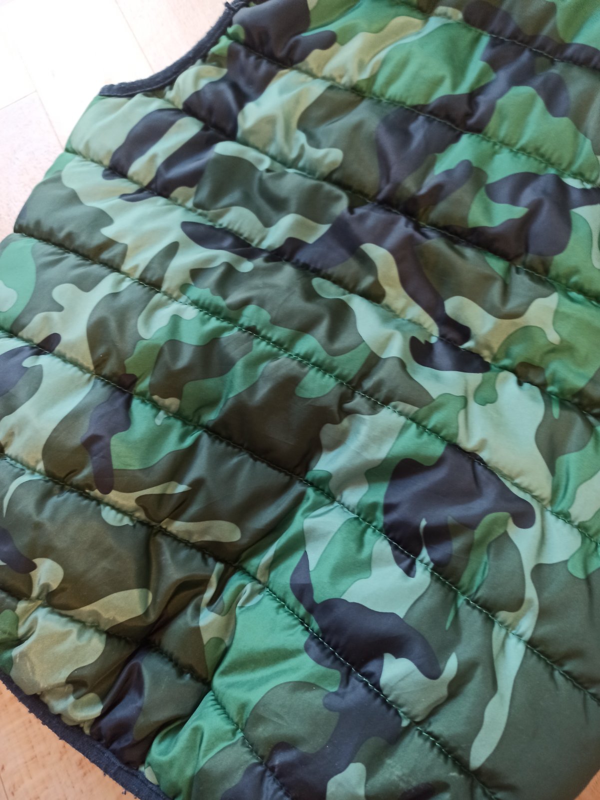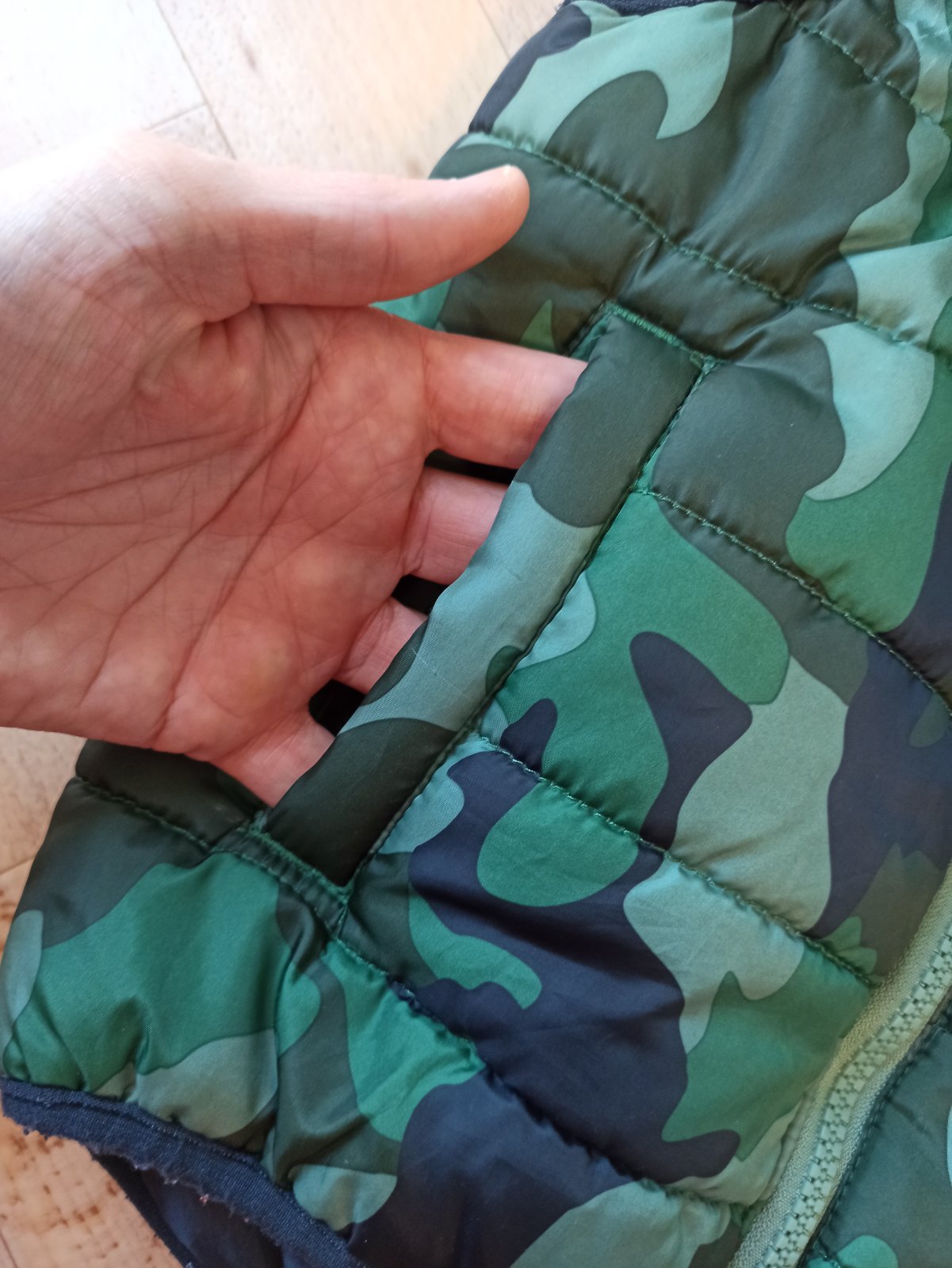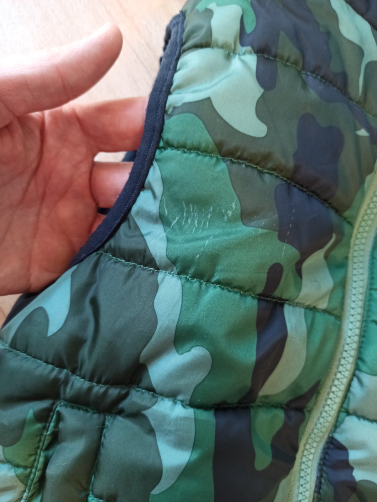 Obojstranná vesta krásnej zelenej, alebo modrej farby. Bez poškodení. Veľkosť 116/122