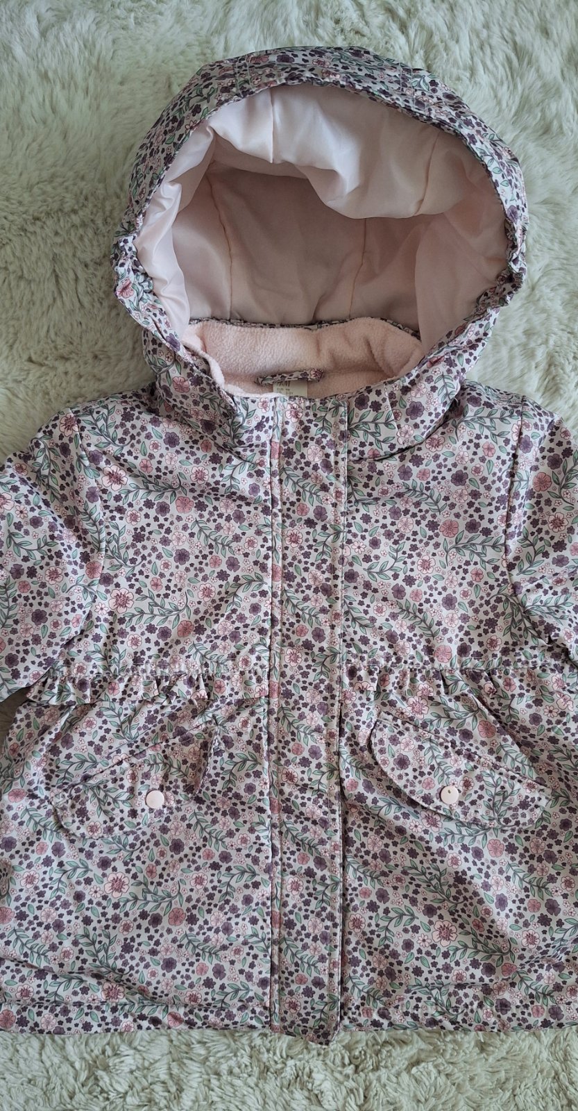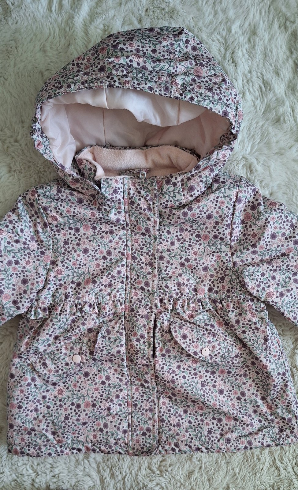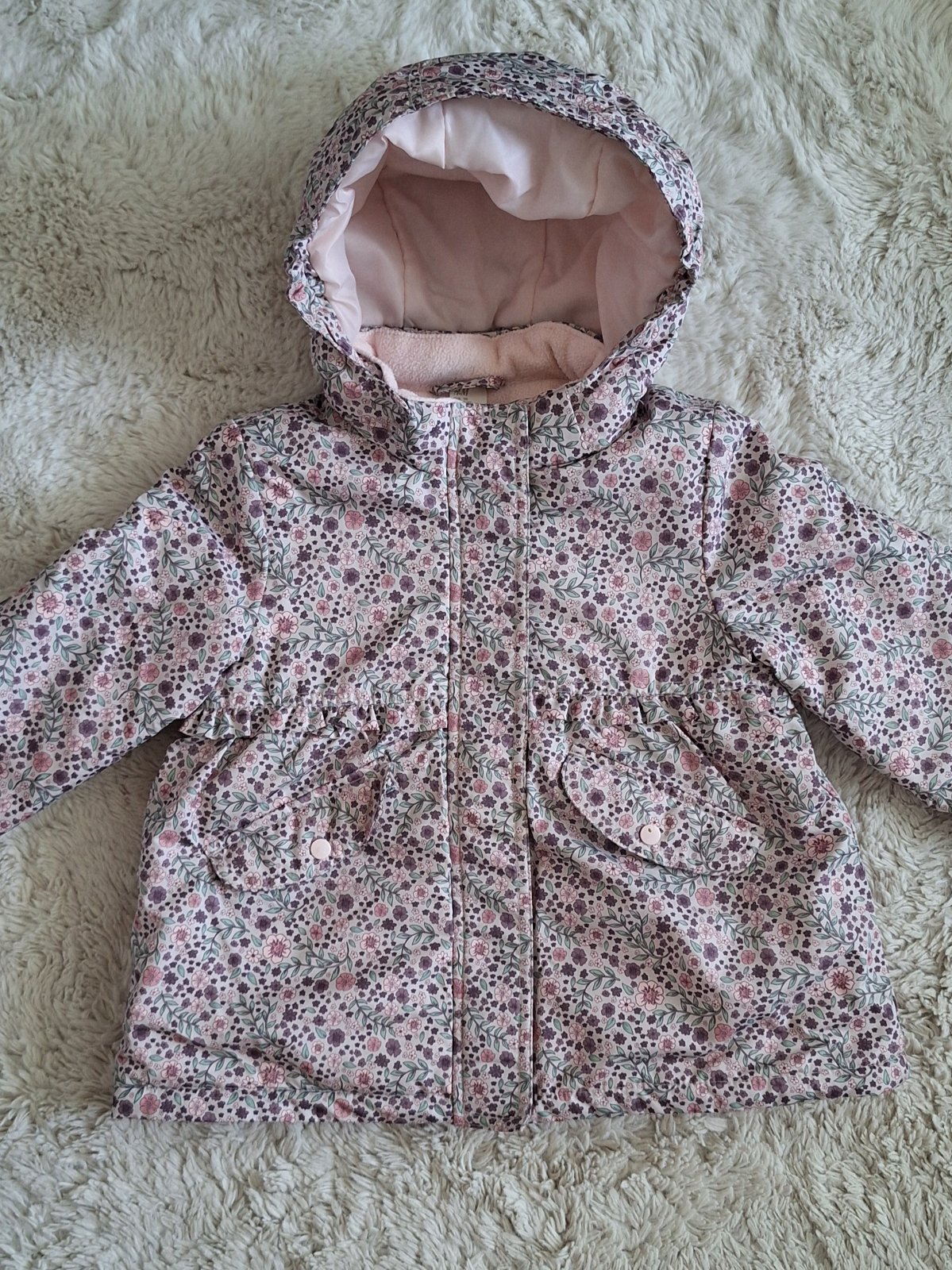 Krásna teplá zimná bundička pre dievčatko velkosť 98 (2-3 roky) Oblečená 2x. Ako nová. Odnímateľná kapucňa.