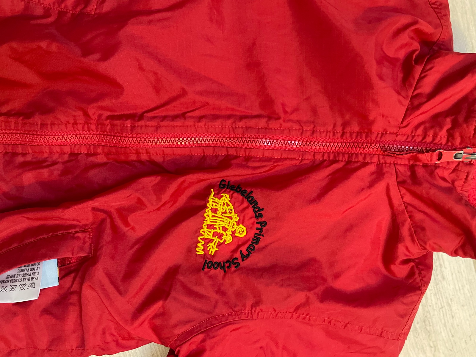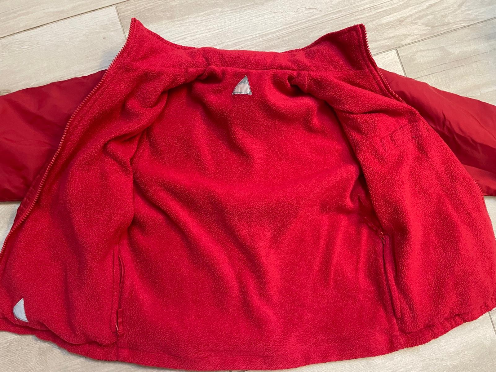 Kvalitná bundička školskej uniformy, vhodná na bežné nosenie, jedna strana šušťák a druhá flauš, bežné známky používania, bez poškodení, kapucka sa zipsuje do goliera