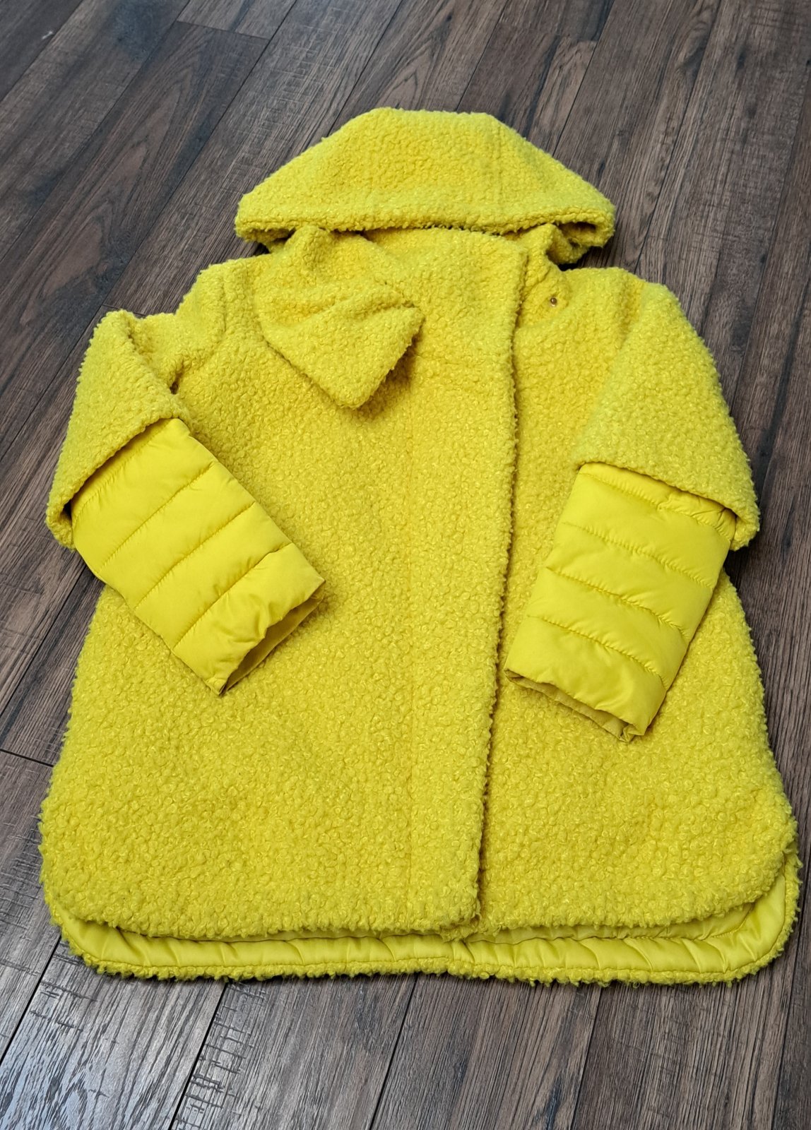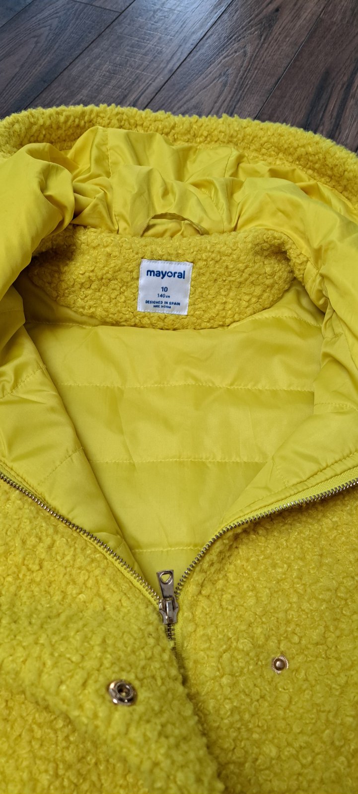 Farba je krásna sýtožltá. Na fotke skreslená. Dlžka 30 cm širka 40 cm rukáv od krku 56 cm. Bunda je v top stave, ako nová.